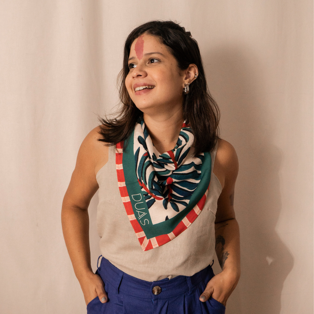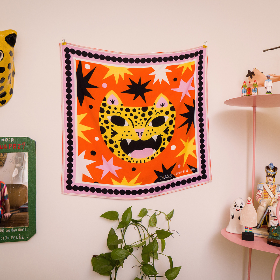 E essa forma diferentona de usar nossos lenços? Já pensou em poder usar as estampas da Duas como bandeira de decoração na sua casa? Isso é totalmente possível. As estampas lindas podem deixar sua casa mais colorida ✨
