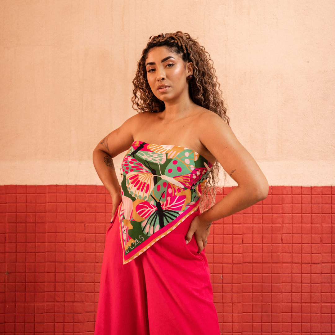 Uma forma diferente de usar o nosso lenço, é transformando ele num top. Com um nó nas costas, fica super firme e despojado. Forma looks incríveis em dias quentes!