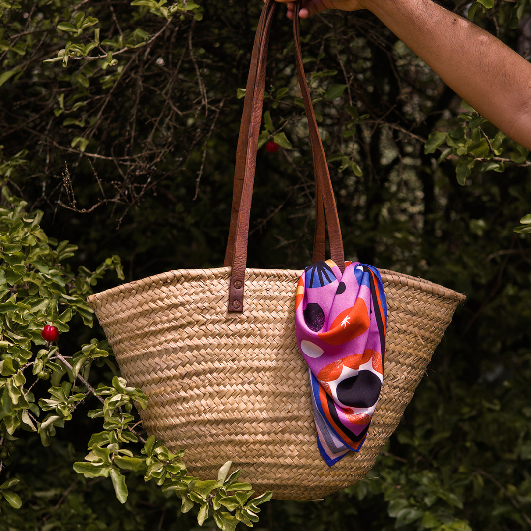 Para dar um charme naquela sua bolsa favorita, você pode usar o lenço combinando com a paleta de cores do seu look. Pode apostar nessa escolha em qualquer bolsa!
