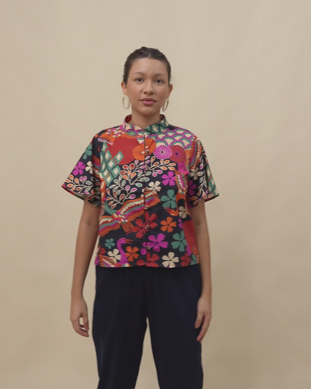 BLUSA NIPÔNICA LINHO 100% | PÁSSAROS