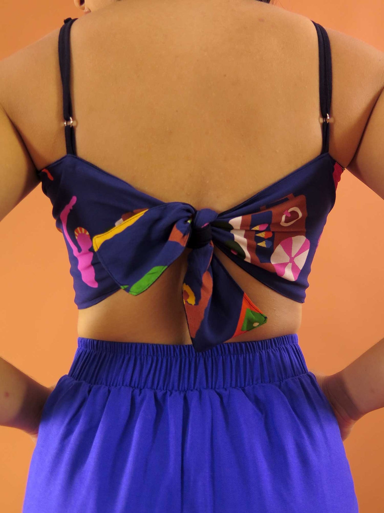 Nosso TOP LAÇO é o mais querido das clientes! Muito confortável e super versátil, o decote trapézio valoriza o colo e o laço atrás permite uma regulagem confortável que adapta melhor ao corpo. Ele é dupla face, sendo um lado estampado e outro liso. 1 top, 2 cores e infinitos usos! Não é o máximo? ❤️