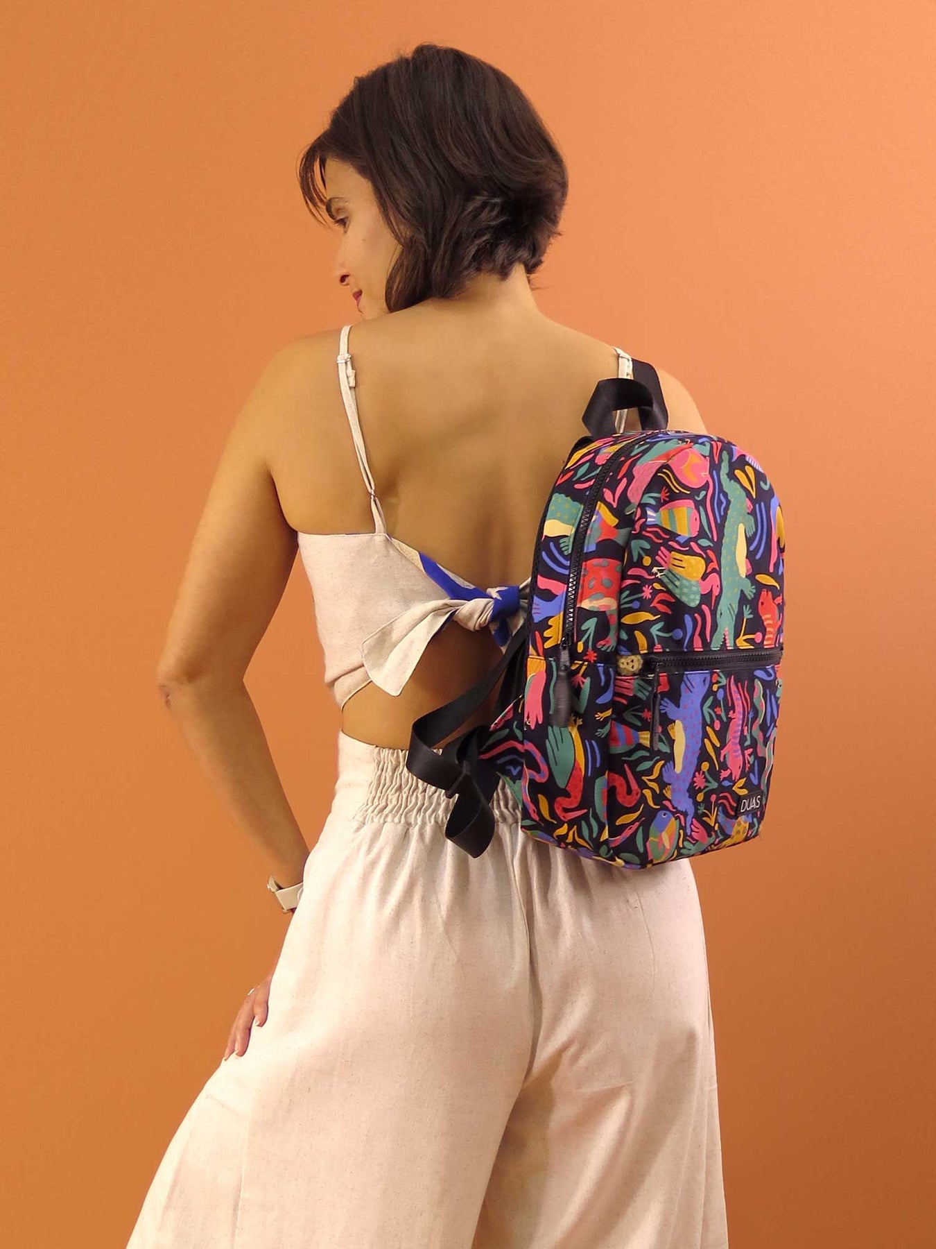 É o Bicho foi criada em 2023, tendo como referência a nossa fauna diversa e tão rica. Estampa cheia de texturas, com um contraste do fundo preto com animais em cores vibrantes e nada óbvias.