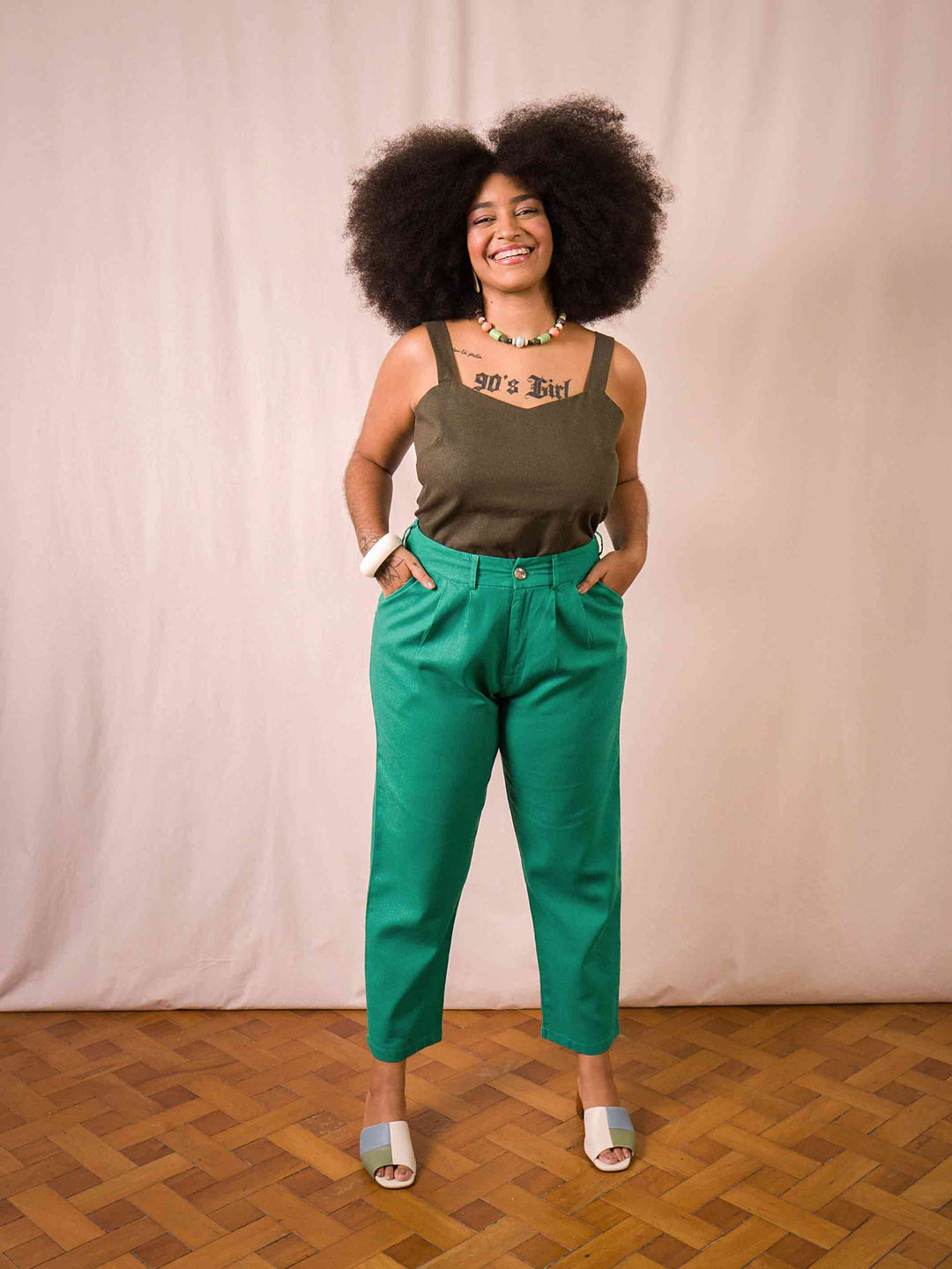 Uma combinação perfeita. Elegante e leve ao mesmo tempo. A escolha de pantalona com o cropped gio é certeira!