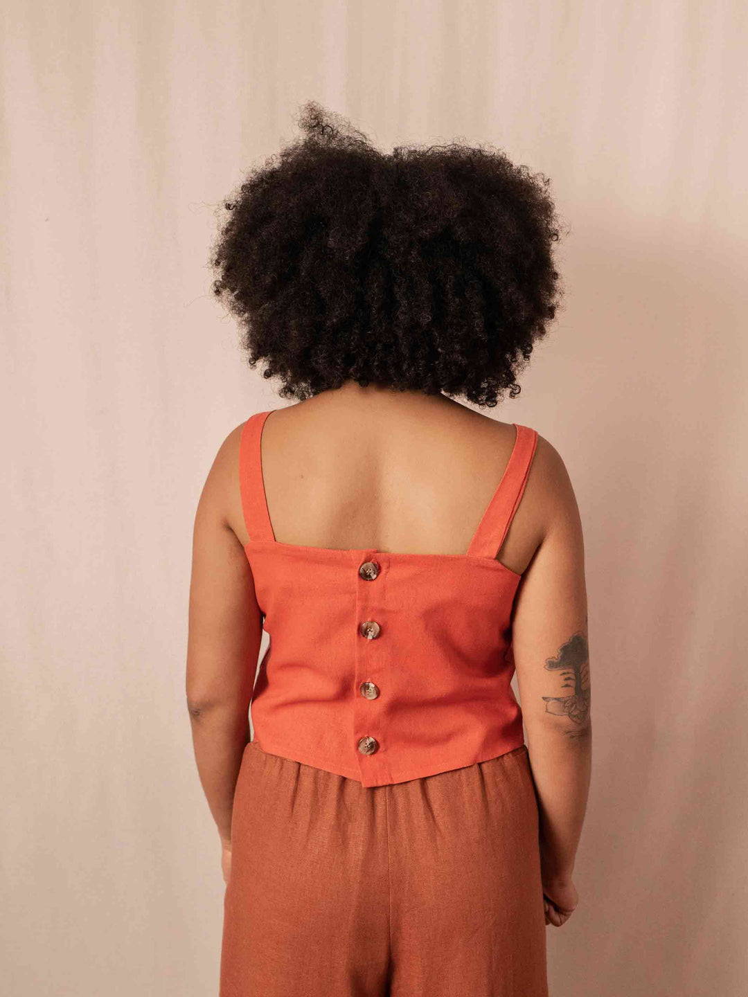O cropped Gio é leve e confortável. Com as mais variadas estampas e também na opção liso, combina bem com diversas ocasiões! Sua modelgem é super interessante, tem alça larga que permitem que você use sutiã e tem um fechamento por botões. Desse jeito, você pode usá-lo de duas formas, com os botões para frente ou para trás!