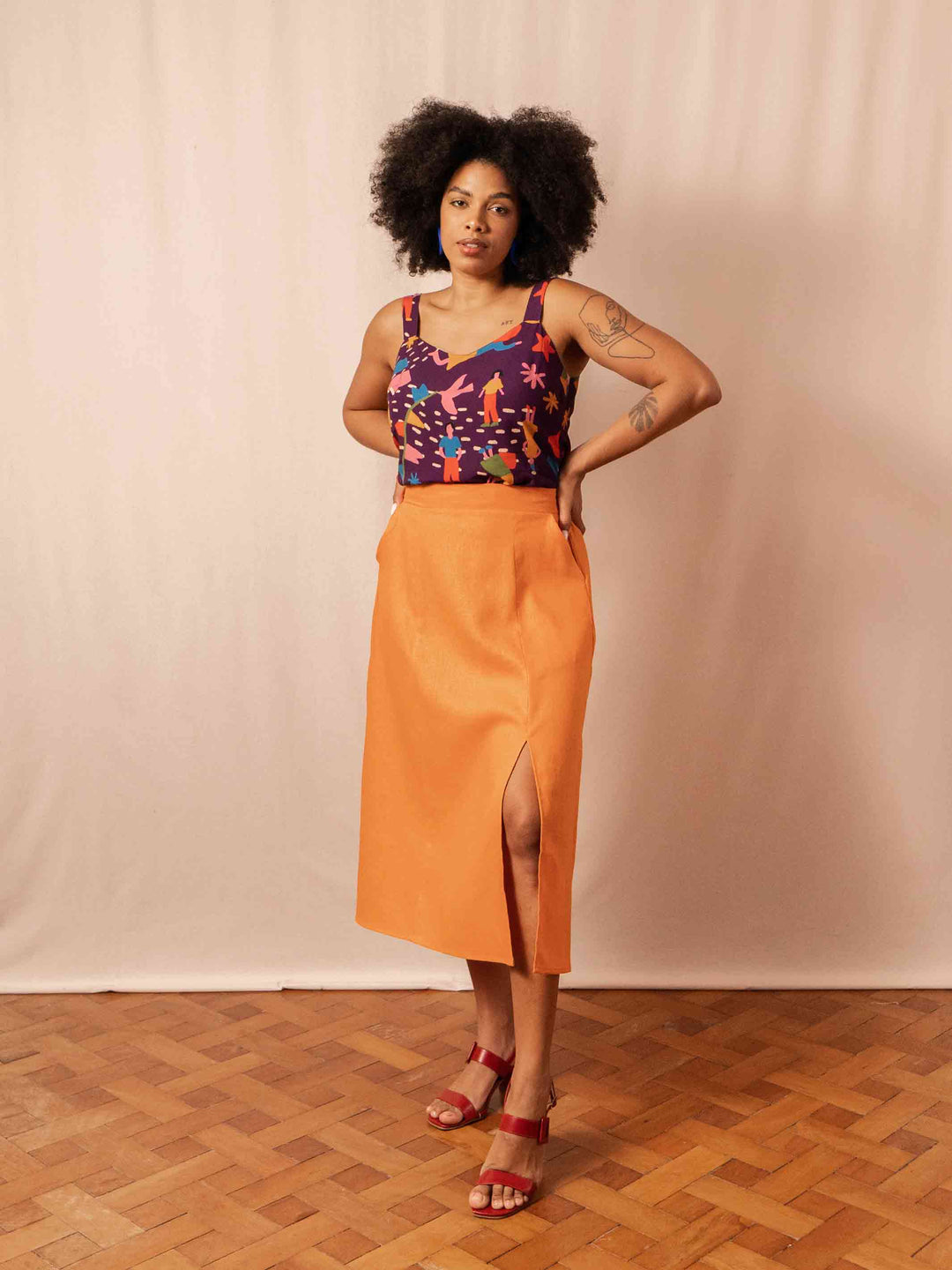 Usado com a saia, traz um ar moderno, valorizando a silhueta. Saias estampadas ou lisas são opções perfeitas!