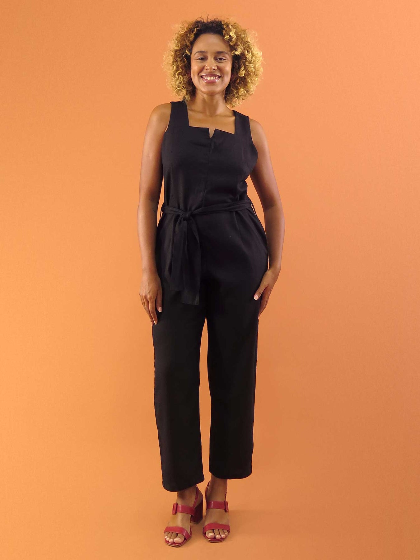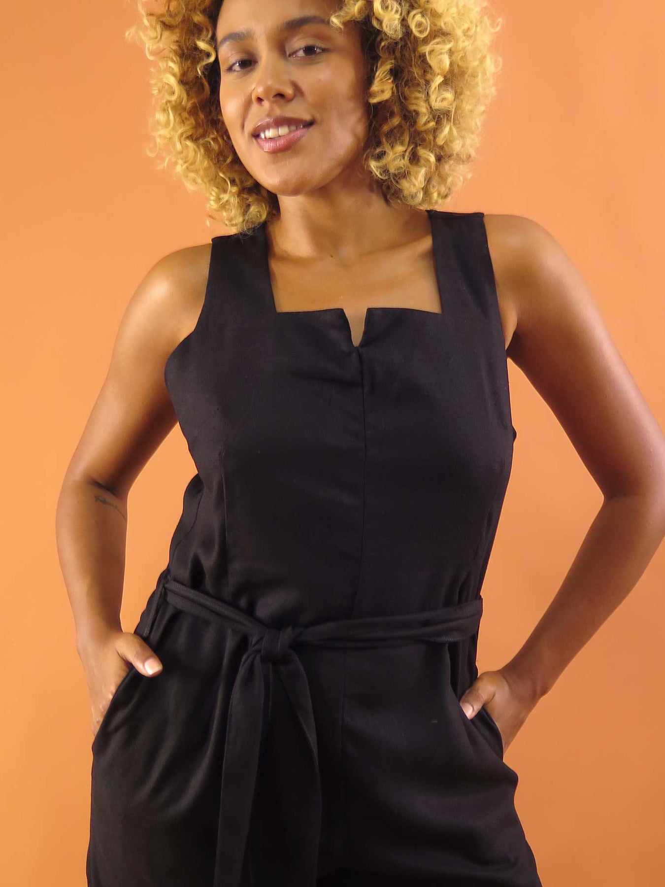 O Macacão Sofia é ideal para quem gosta de uma peça soltinha, sem abrir mão de uma modelagem acinturada. O desenho no decote dá um toque especial à peça. Com faixa na cintura, pode ser usado mais justo ou mais folgadinho. Versátil, combina com rasteira, salto ou tênis 💖