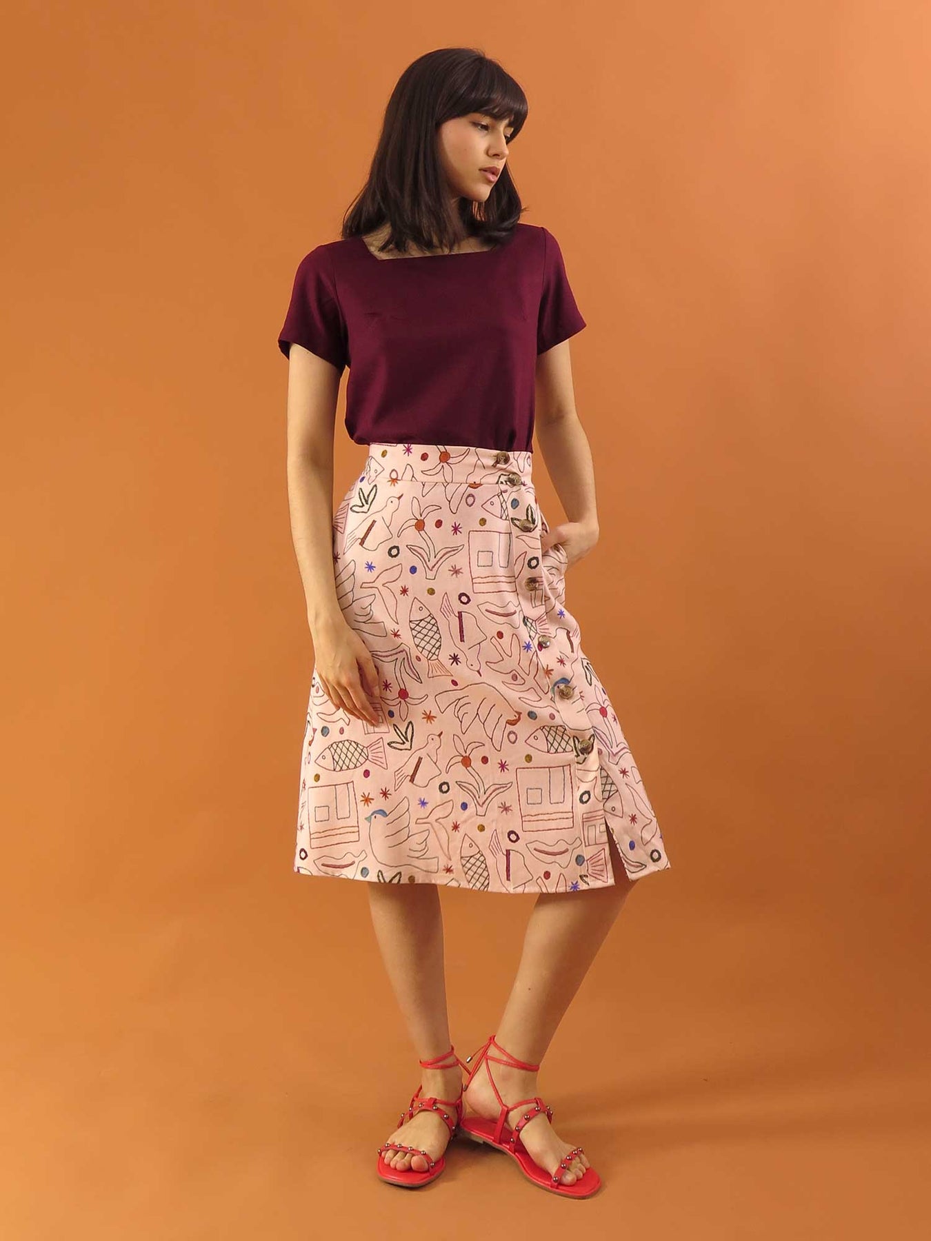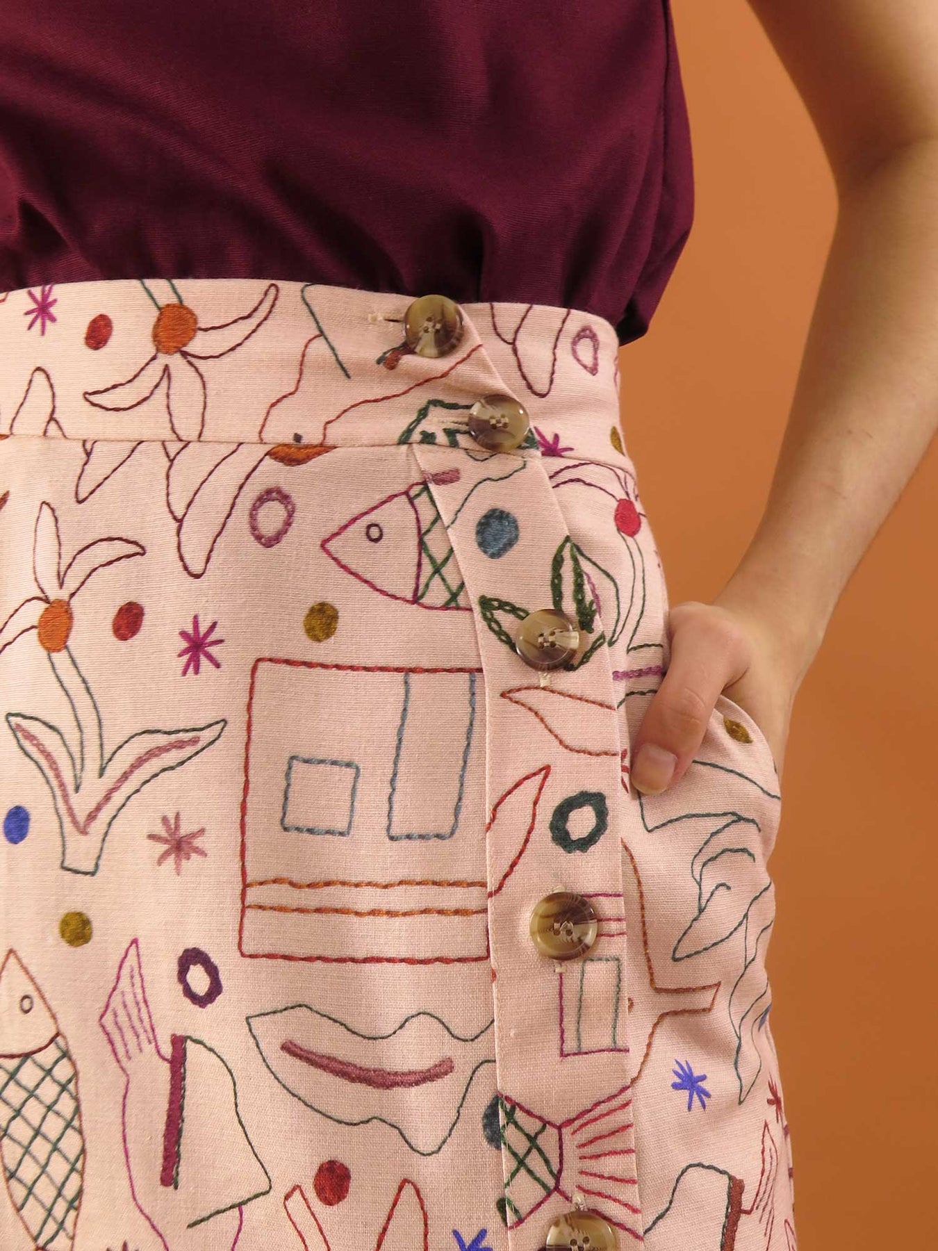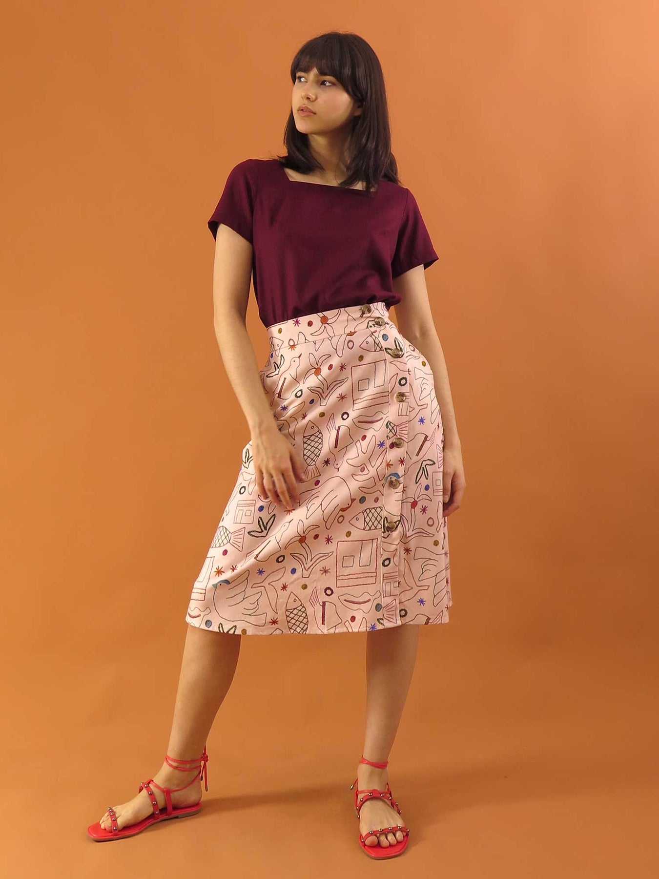 A Saia Dani é super charmosa e versátil! Possui comprimento midi e uma modelagem com fechamento assimétrico em botões. Ainda conta com elástico super confortável na parte de trás e bolsos funcionais. Maravilhosa, não é? ❤️