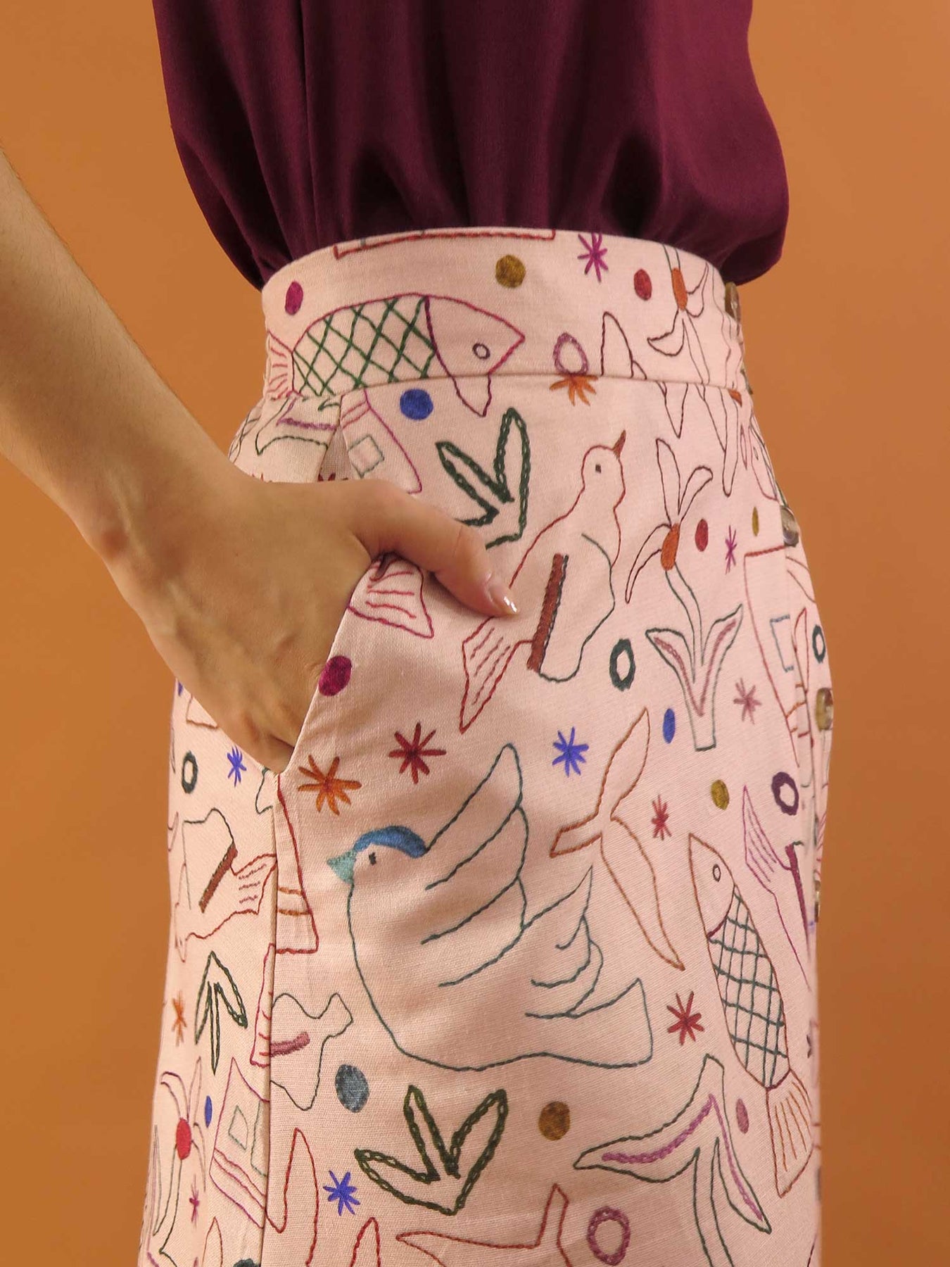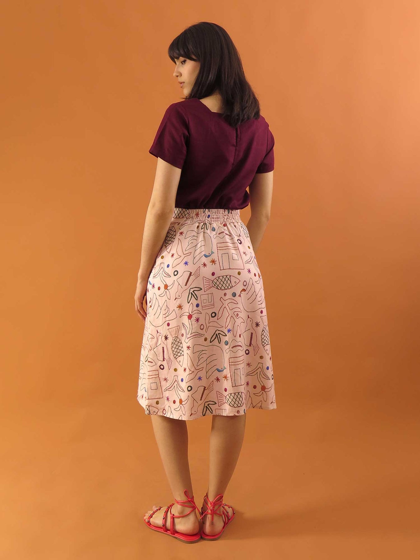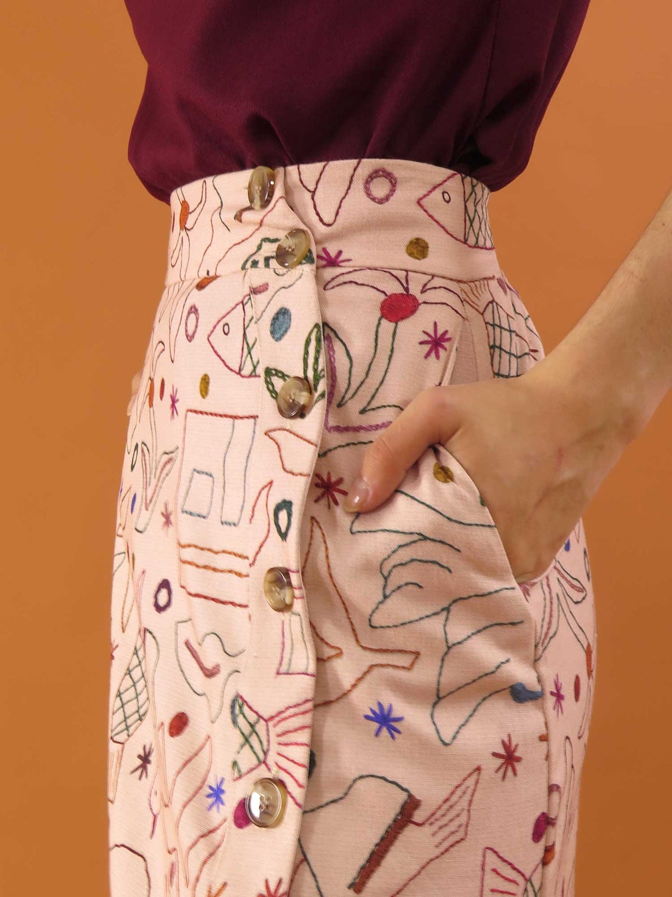 A Saia Dani é super charmosa e versátil! Possui comprimento midi e uma modelagem com fechamento assimétrico em botões. Ainda conta com elástico super confortável na parte de trás e bolsos funcionais. Maravilhosa, não é? ❤️