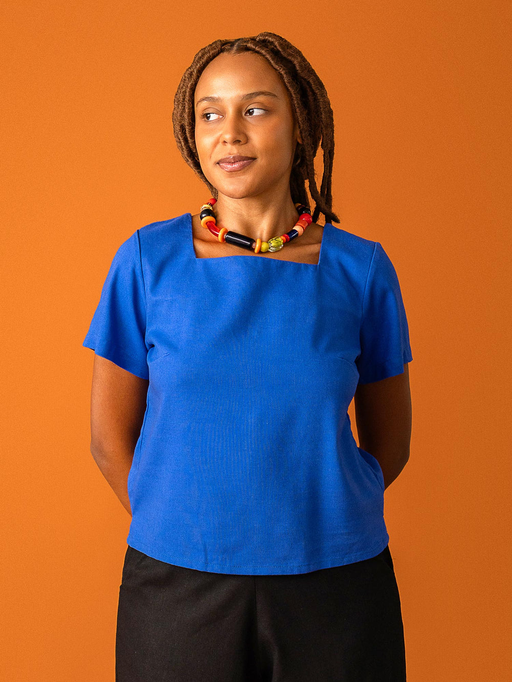 A Blusa Sônia é aquela peça versátil perfeita para o dia a dia, trabalho ou uma ocasião especial✨ Com um decote quadrado, possui uma modelagem mais reta, ideal para quem gosta de peças mais sequinhas. O detalhe do botão nas costas dá um charme a mais na peça, me diz se não é maravilhosa? ♥️