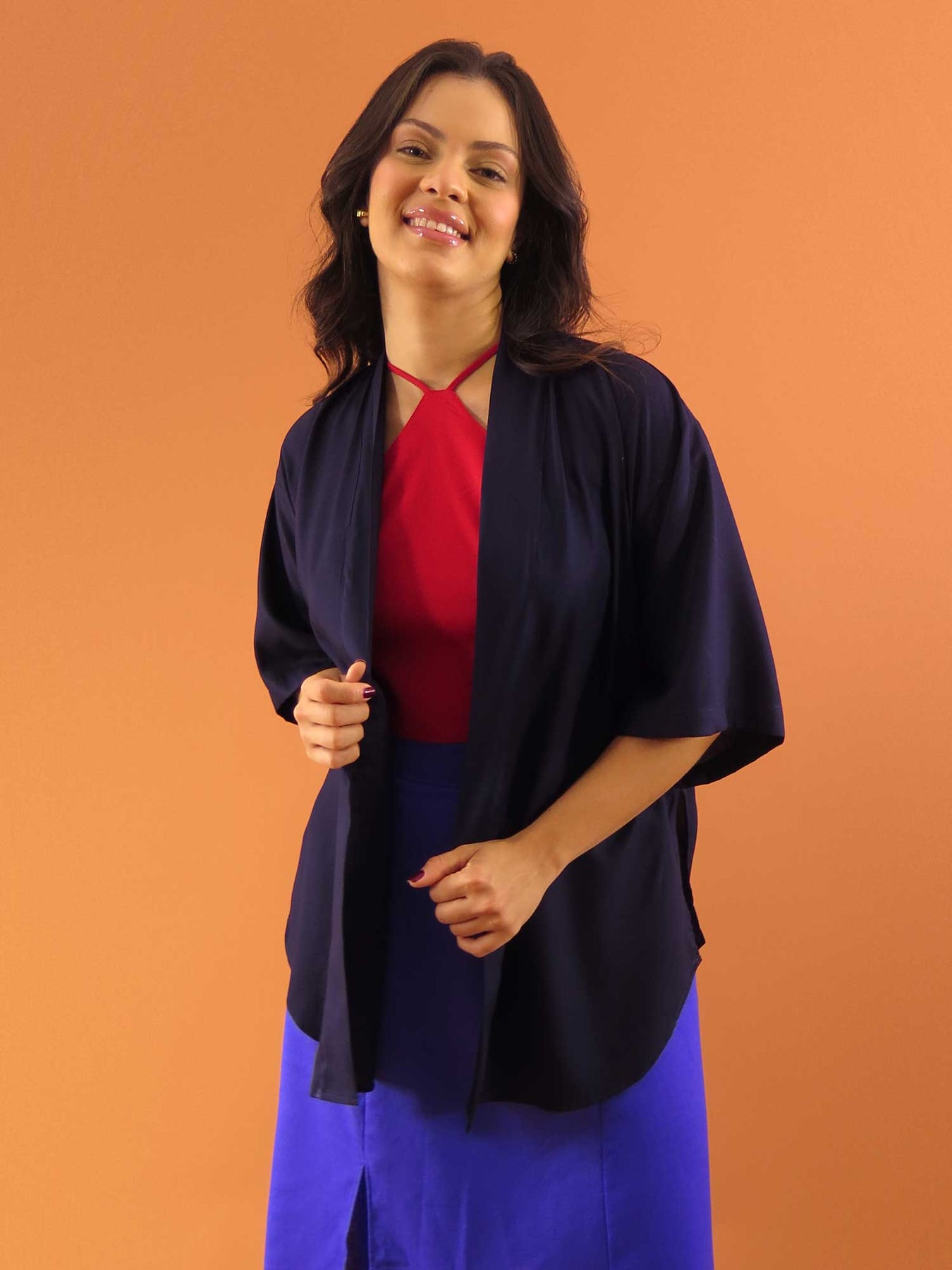 O Kimono é a peça coringa que levanta qualquer produção, mesmo sobre looks básicos ✨ Com corte lateral, é ainda mais versátil e confortável. Pode ser usado sobre a roupa, dentro de uma calça de cintura alta, como cropped com nózinho na frente, como blusa com nó atrás ou até como saída de praia. ♥️