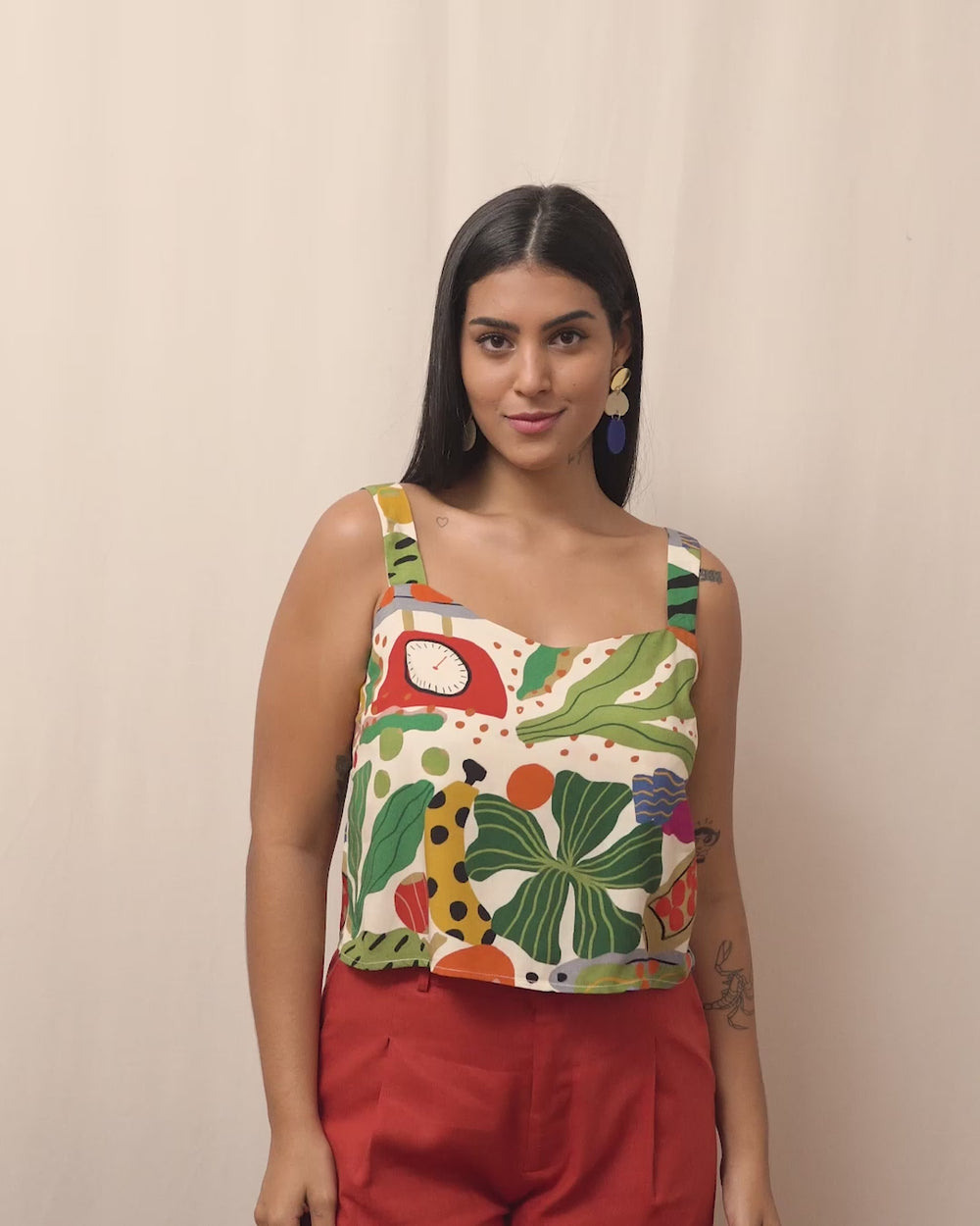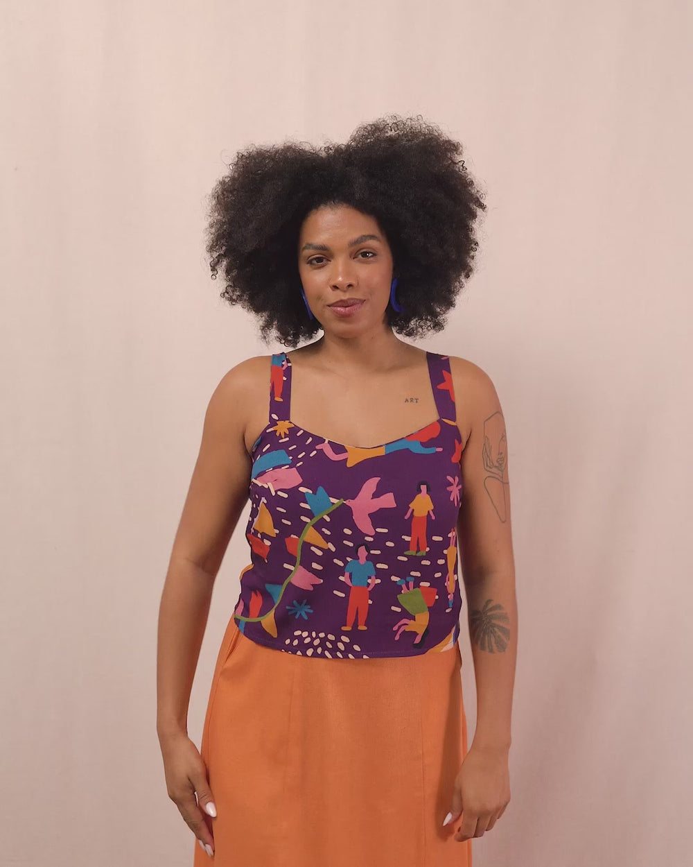 O cropped Gio é leve e confortável. Com as mais variadas estampas e também na opção liso, combina bem com diversas ocasiões! Sua modelgem é super interessante, tem alça larga que permitem que você use sutiã e tem um fechamento por botões. Desse jeito, você pode usá-lo de duas formas, com os botões para frente ou para trás!