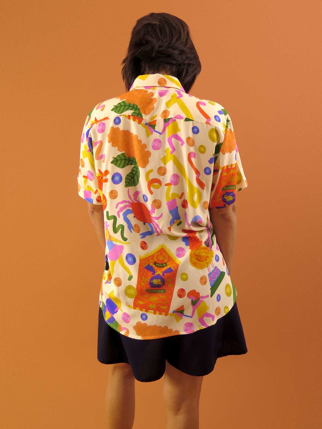 A Camisa de Botão é agênero e super versátil, daquelas peças coringa que vão do parque a uma festa sem esforço. 🍸 Pode ser usada abotoada, com a gola para dentro criando um decote em “V”, aberta como terceira peça, como saída de banho ou até com um nózinho na frente virando cropped. 💫