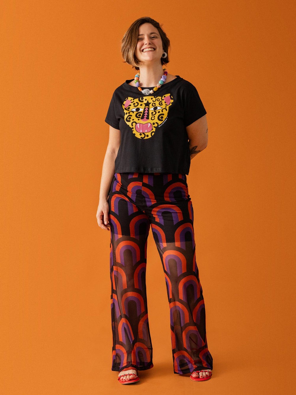 A modelo tem 96 cm de busto x 83 cm de cintura x 110 cm de quadril.
