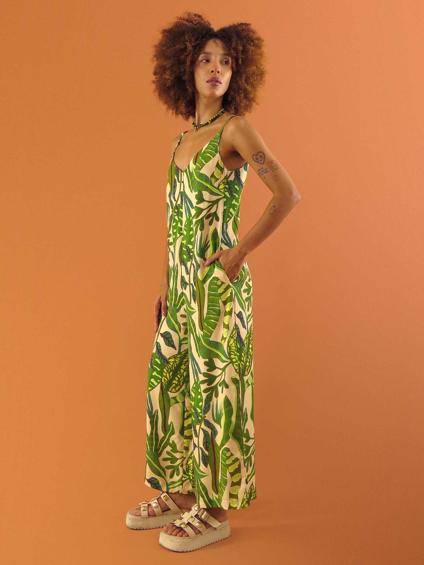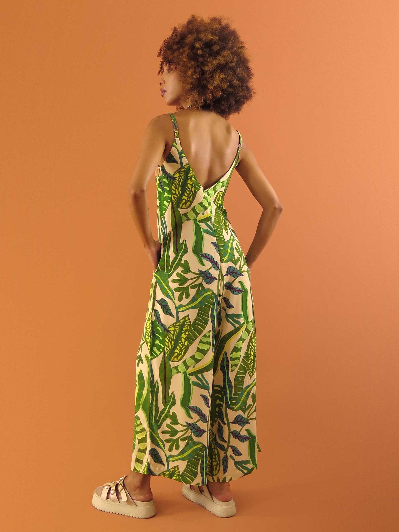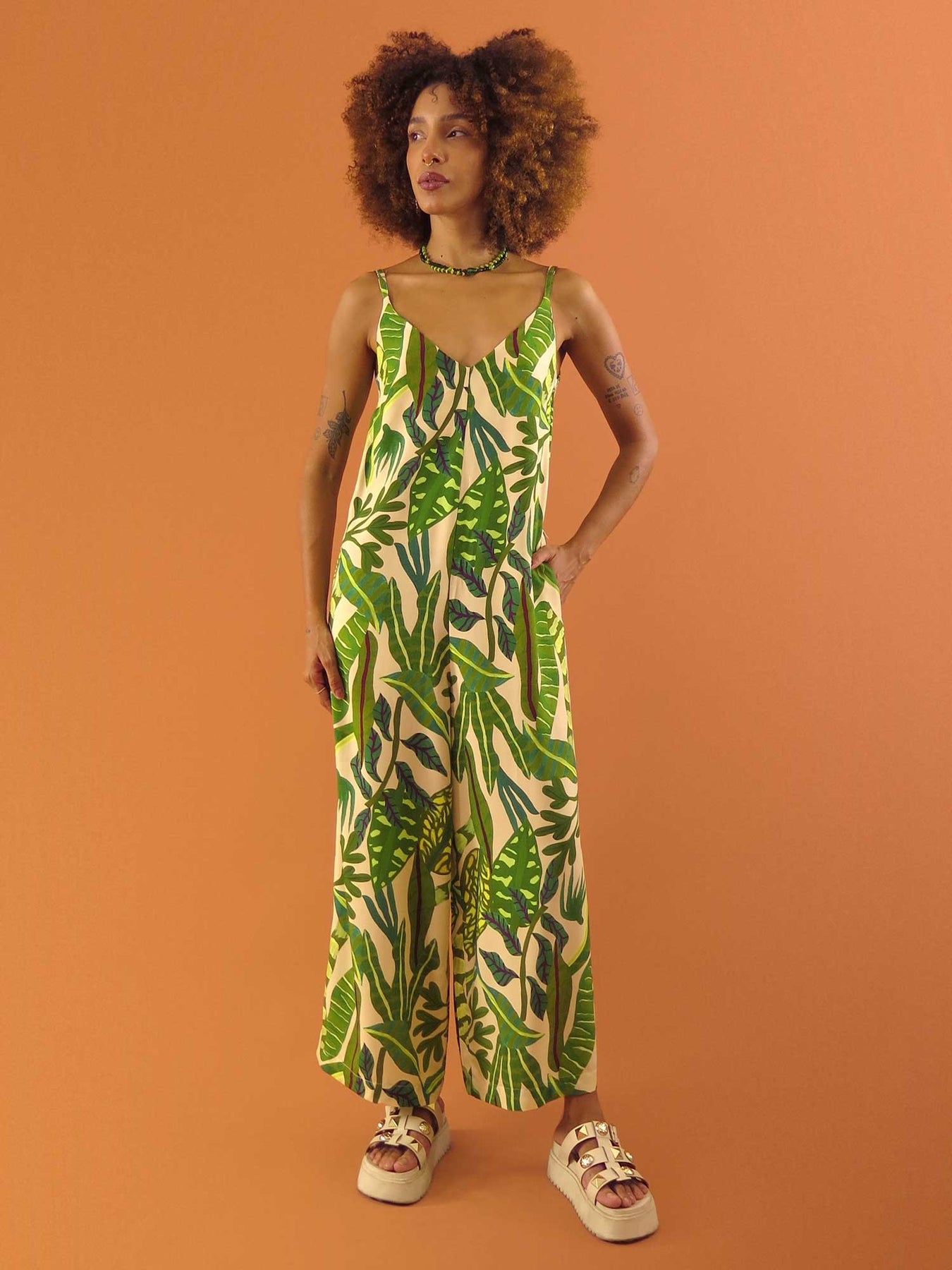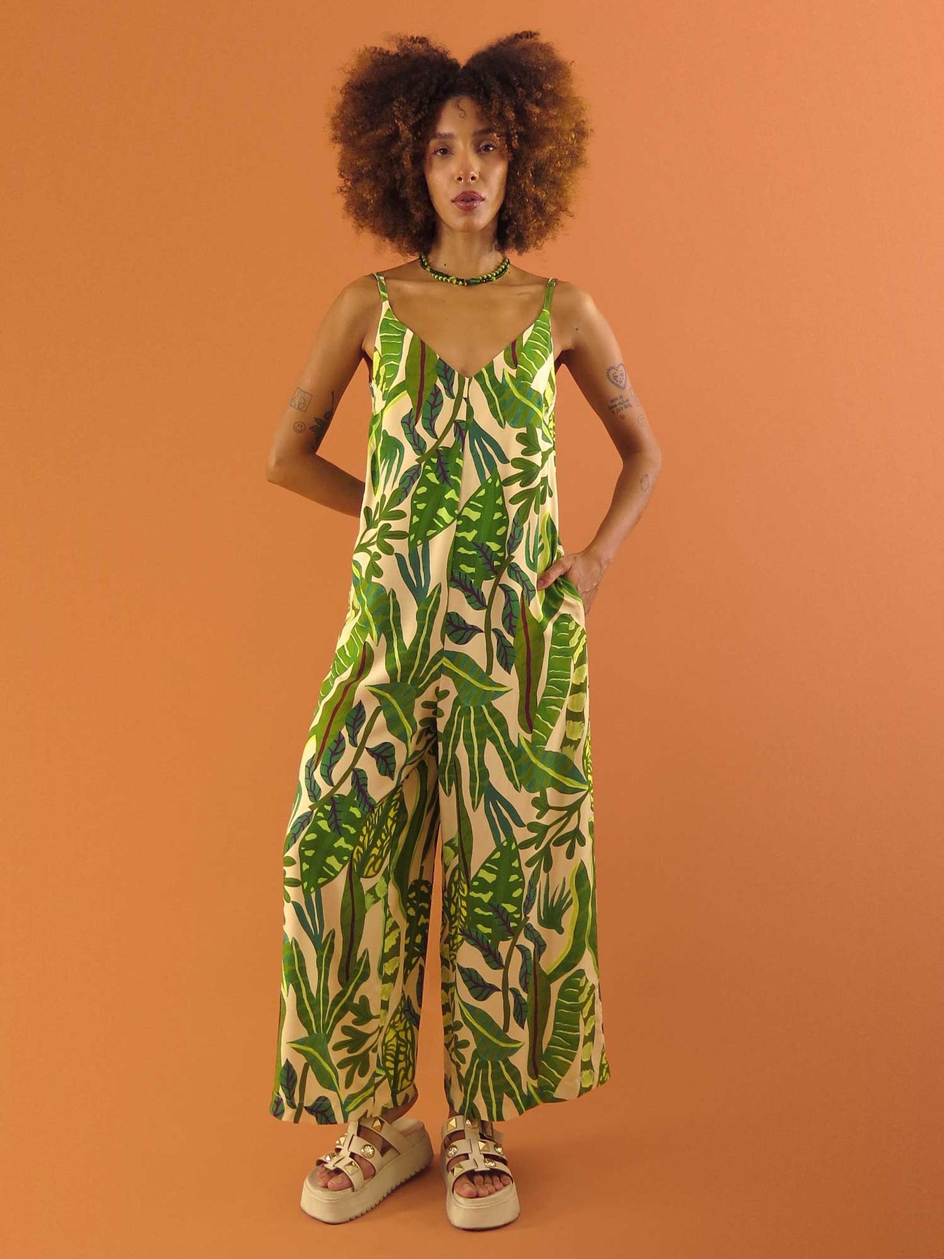 O Macacão Hayla é leve, fluido e elegante. Possui alças finas reguláveis, bolsos embutidos e decote em “V” na frente e nas costas. Muito versátil, é perfeito para diferentes ocasiões: com salto, para um look mais elegante; com tênis ou sandália rasteira, para um estilo casual cheio de personalidade ✨