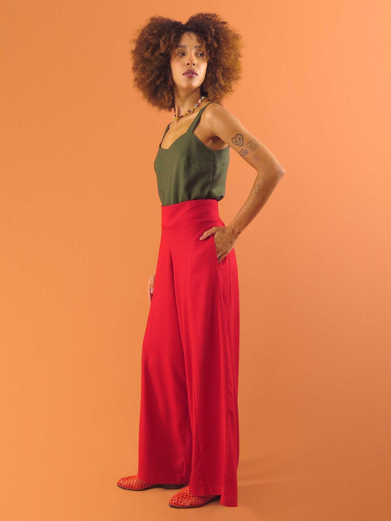 A Pantalona queridinha da DUAS, numa modelagem mais sequinha.♥️ É leve, fluida e elegante! Com recortes frontais, bolsos funcionais e elástico nas costas, a Pantalona Marina Slim é super confortável! Pode ser usada em diversas ocasiões, pois é muito versátil, indo de um look para o dia a dia, até para uma ocasião especial!✨