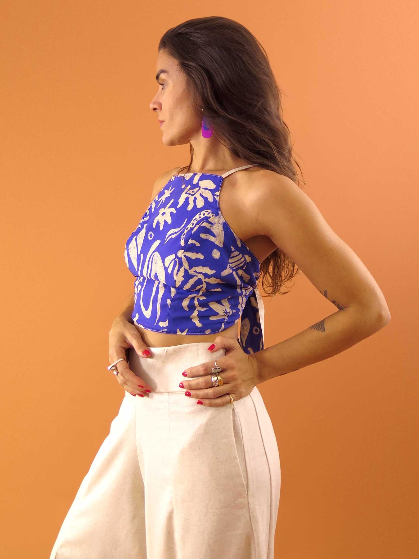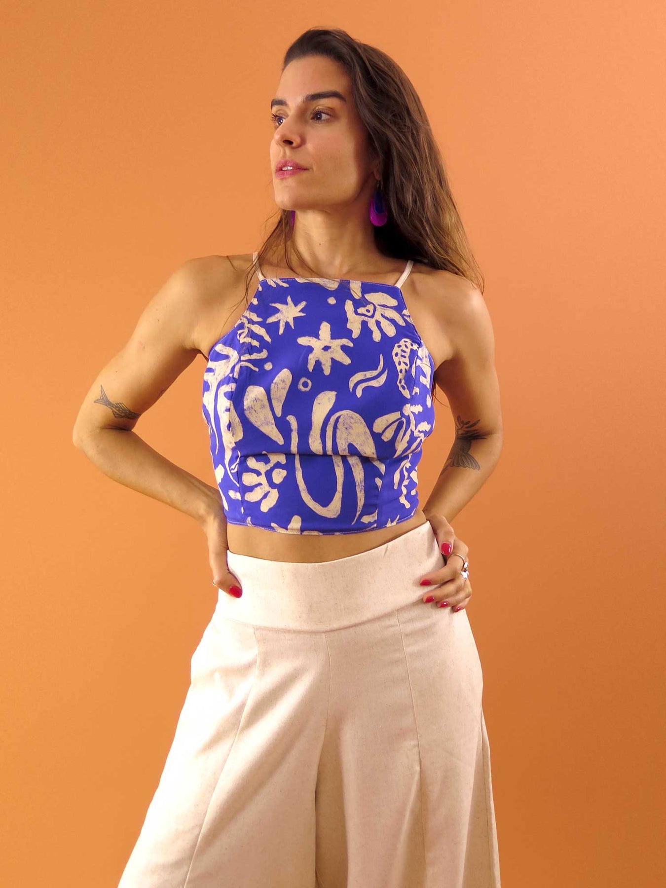 Nosso TOP LAÇO é o mais querido das clientes! Muito confortável e super versátil, o decote trapézio valoriza o colo e o laço atrás permite uma regulagem confortável que adapta melhor ao corpo. Ele é dupla face, sendo um lado estampado e outro liso. 1 top, 2 cores e infinitos usos! Não é o máximo? ❤️