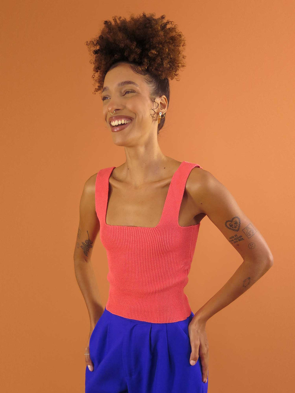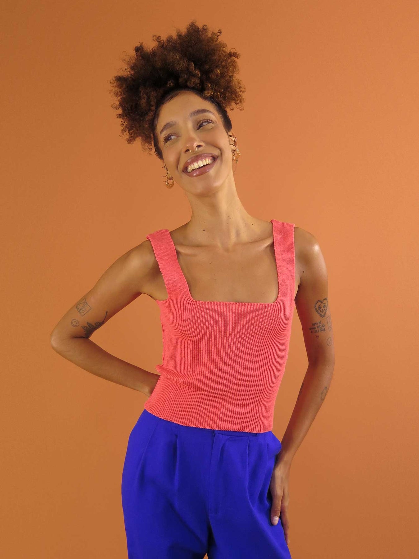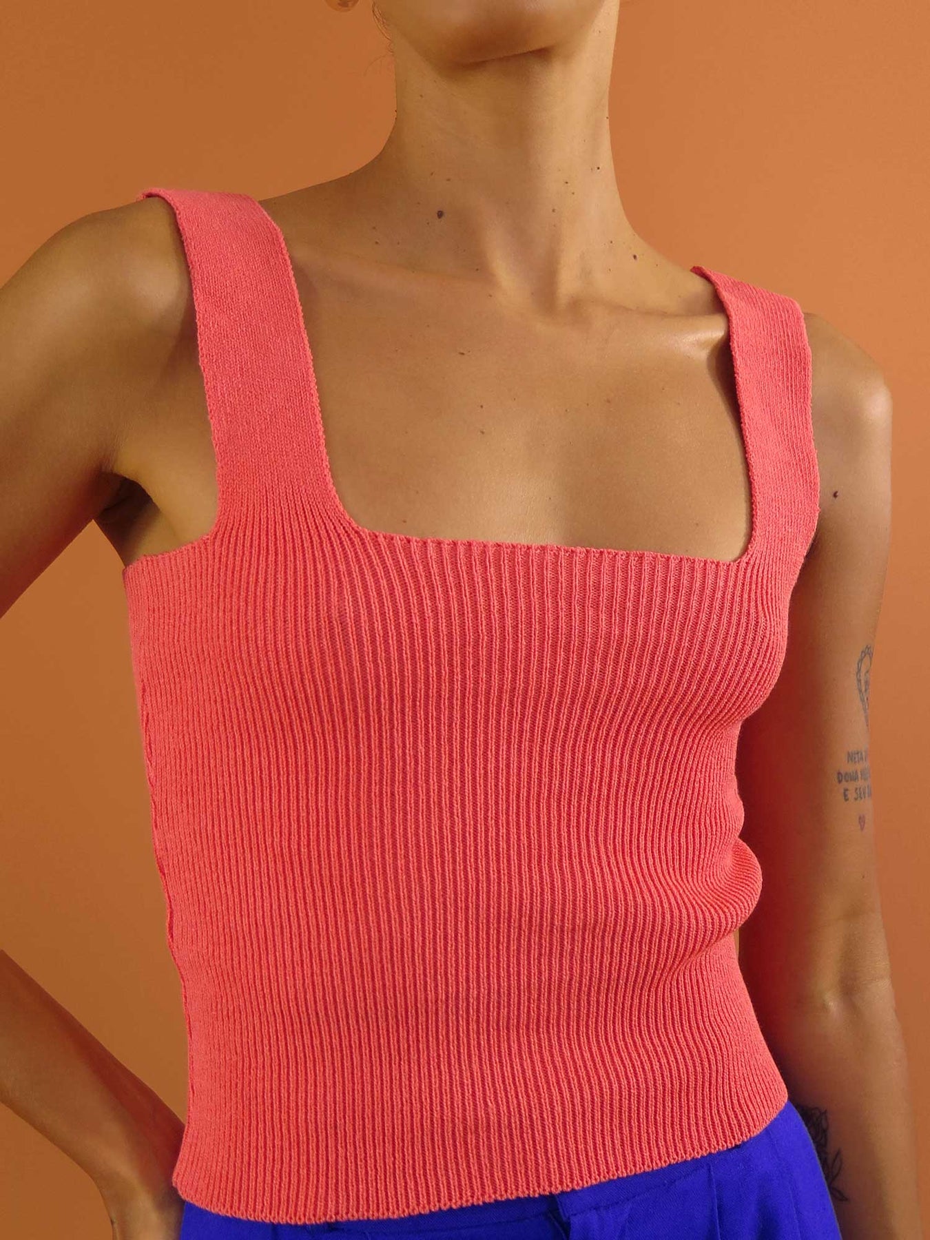 Feito de tricot de viscose e algodão, é aquela peça básica e versátil que combina com tudo Com o decote quadrado e alças mais largas, é super confortável! ✨ Perfeito para compor looks com nossas peças estampadas ou lisas, é um top coringa que vai do dia a dia até uma ocasião especial. ♥️