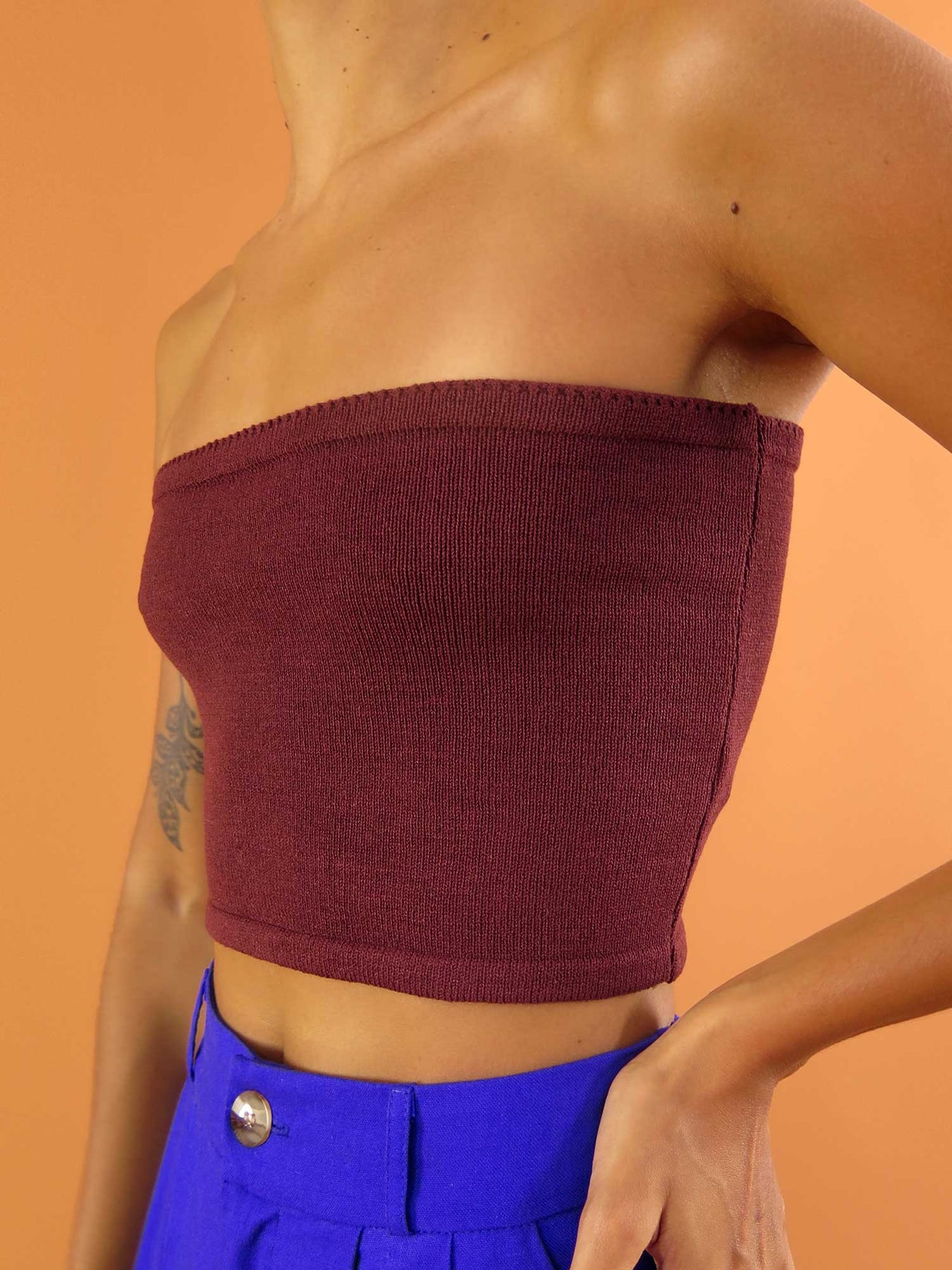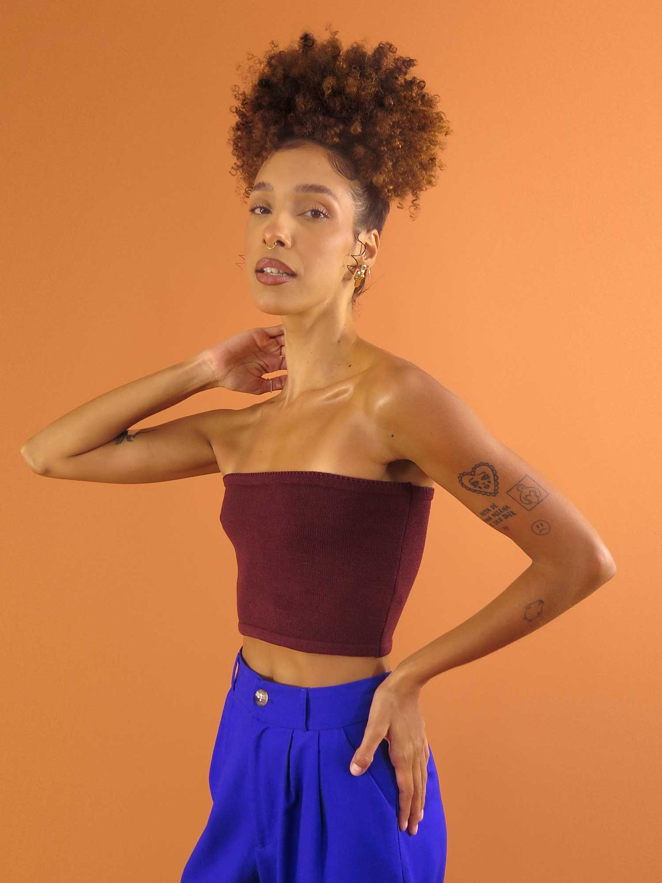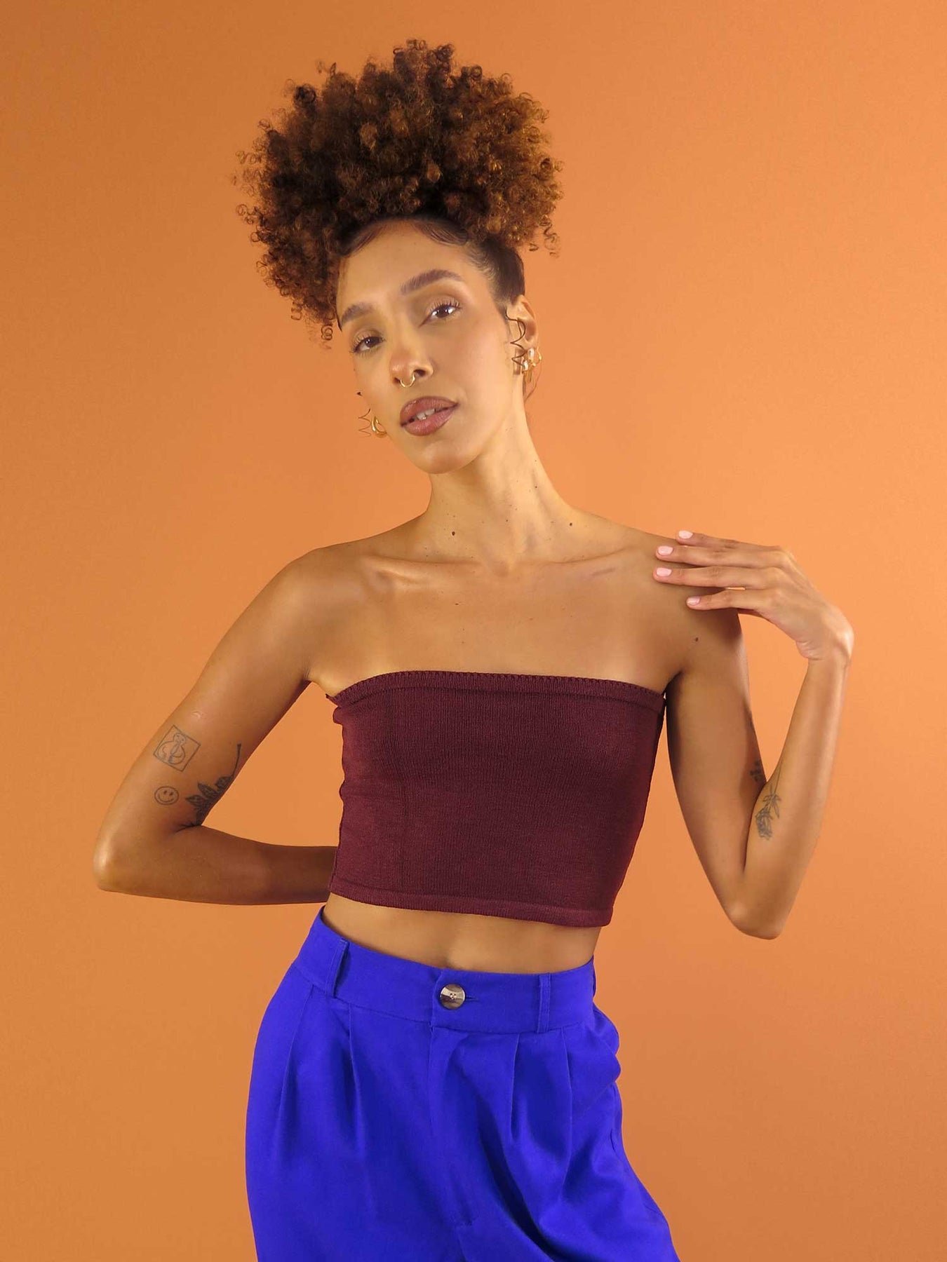 O top Ester é puro conforto e estilo! ✨Na cor Vinho e Feito de tricot de viscose e algodão, ele tem modelagem faixa, que se ajusta perfeitamente ao corpo, valorizando a silhueta sem apertar.Um básico indispensável versátil, confortável e cheio de charme perfeito para usar sozinho ou por baixo de camisas, kimonos e blazers.