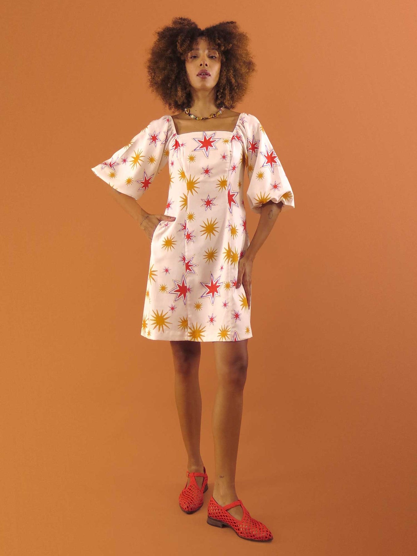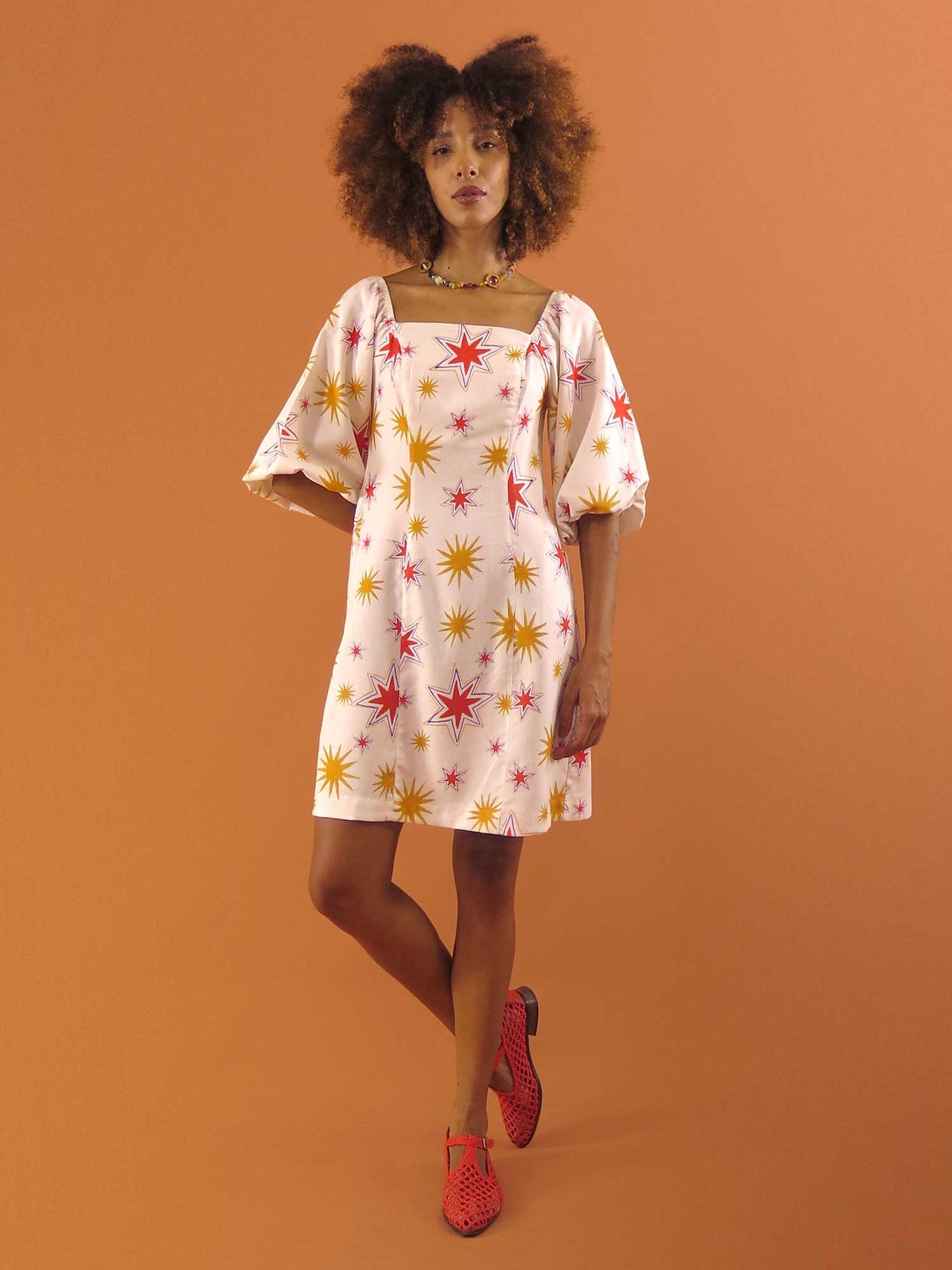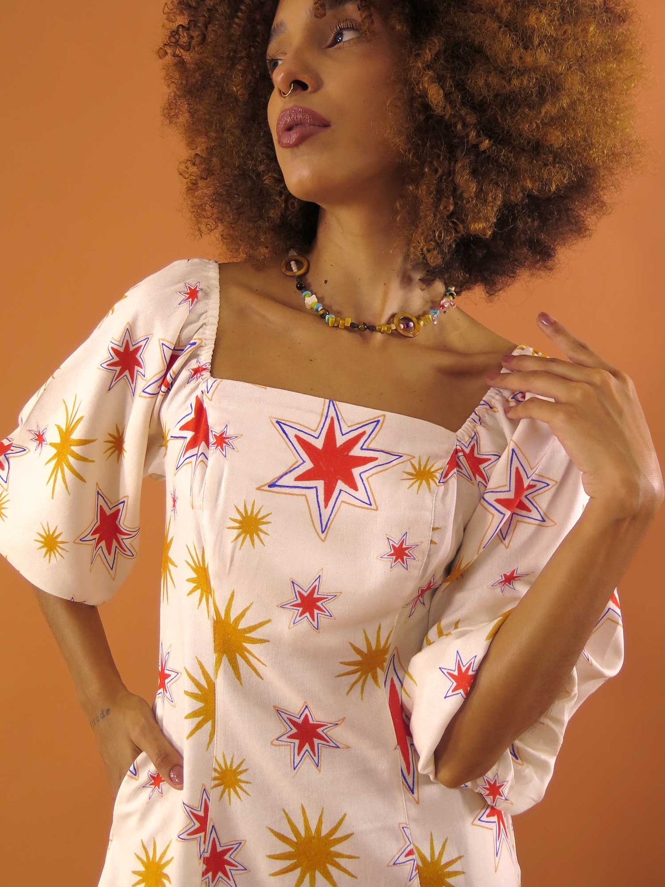 O Vestido Rita é super leve, fresco e respirável. Possui decote reto, mangas bufantes e elásticos muito confortáveis nos punhos e ombros. 😍 Os recortes frontais dão um super charme e o lastéx nas costas faz com que a peça modele perfeitamente o corpo. Me fala se não é maravilhoso? ✨