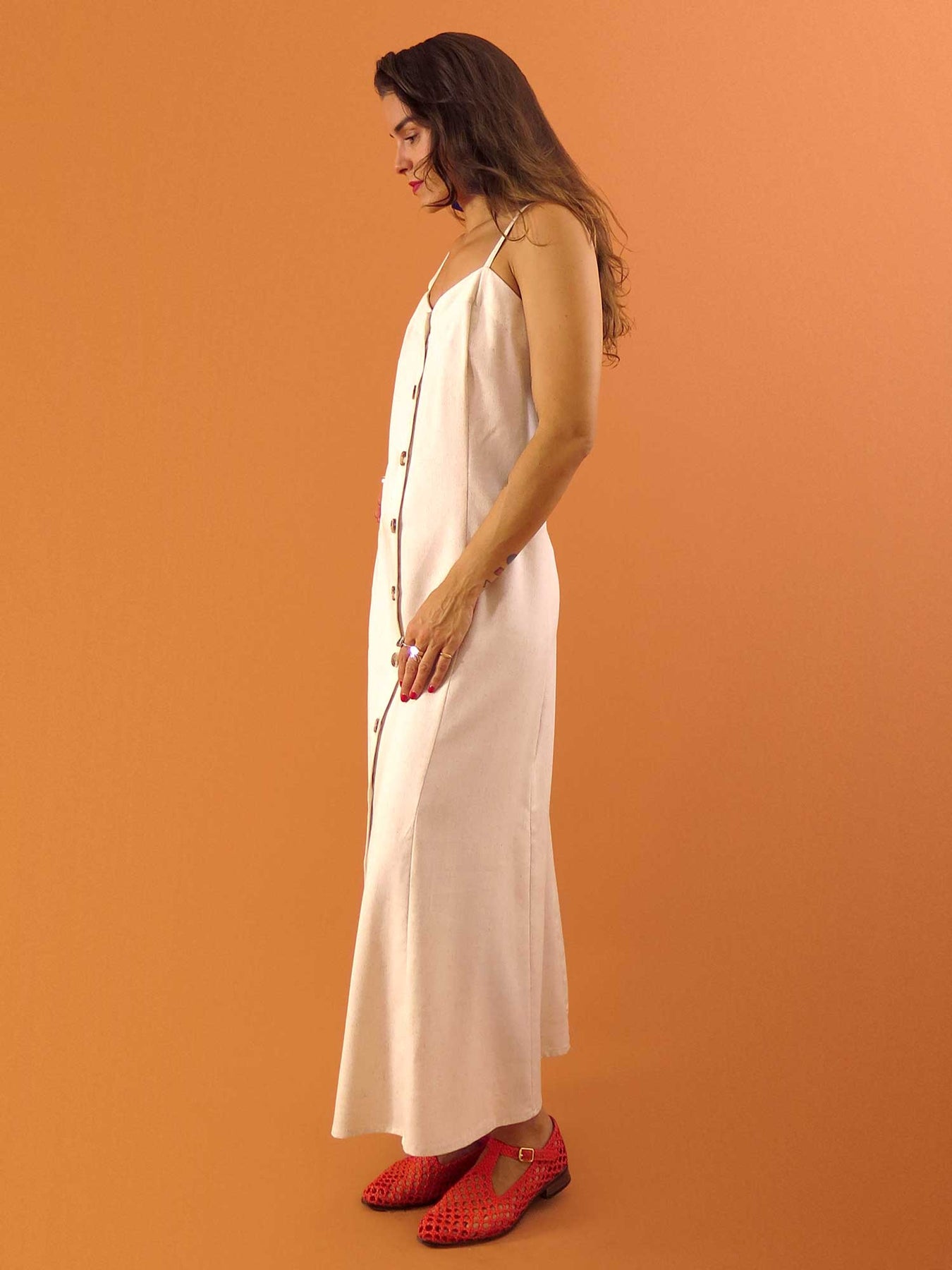 Vestido longuete com fechamento por botões que é um clássico da DUAS e amor à primeira vista das clientes. Muito versátil, vai de um passeio no parque a um encontro mais especial. Com comprimento longuete e fechamento em botões (Perfeito para lactantes ❤️) é uma peça com caimento fluido e elegante. ✨