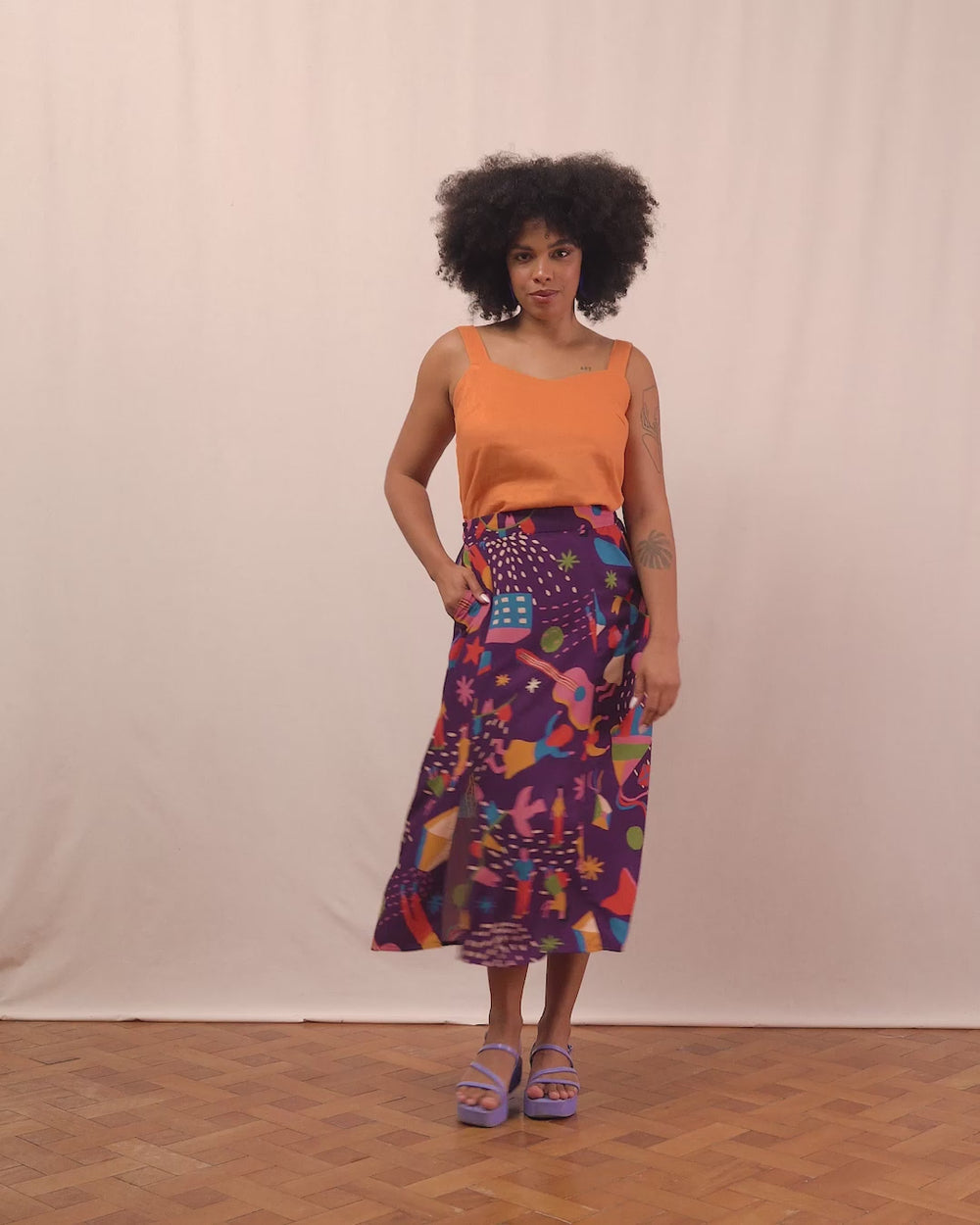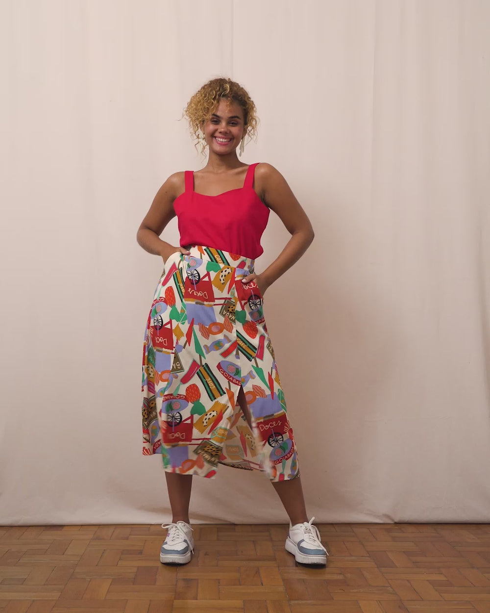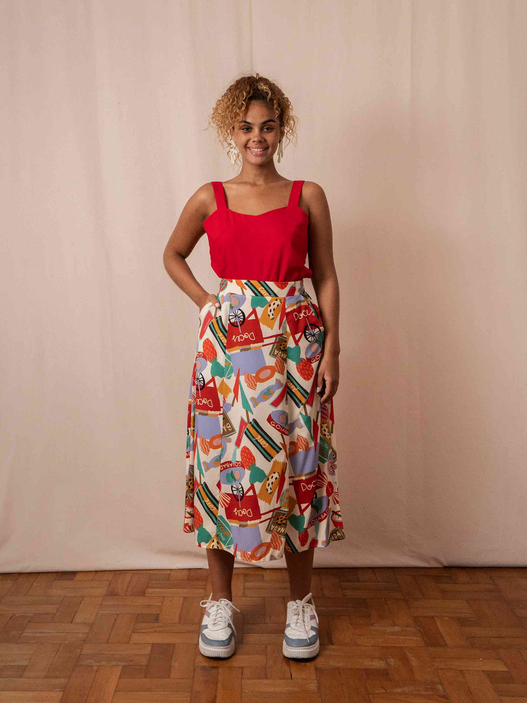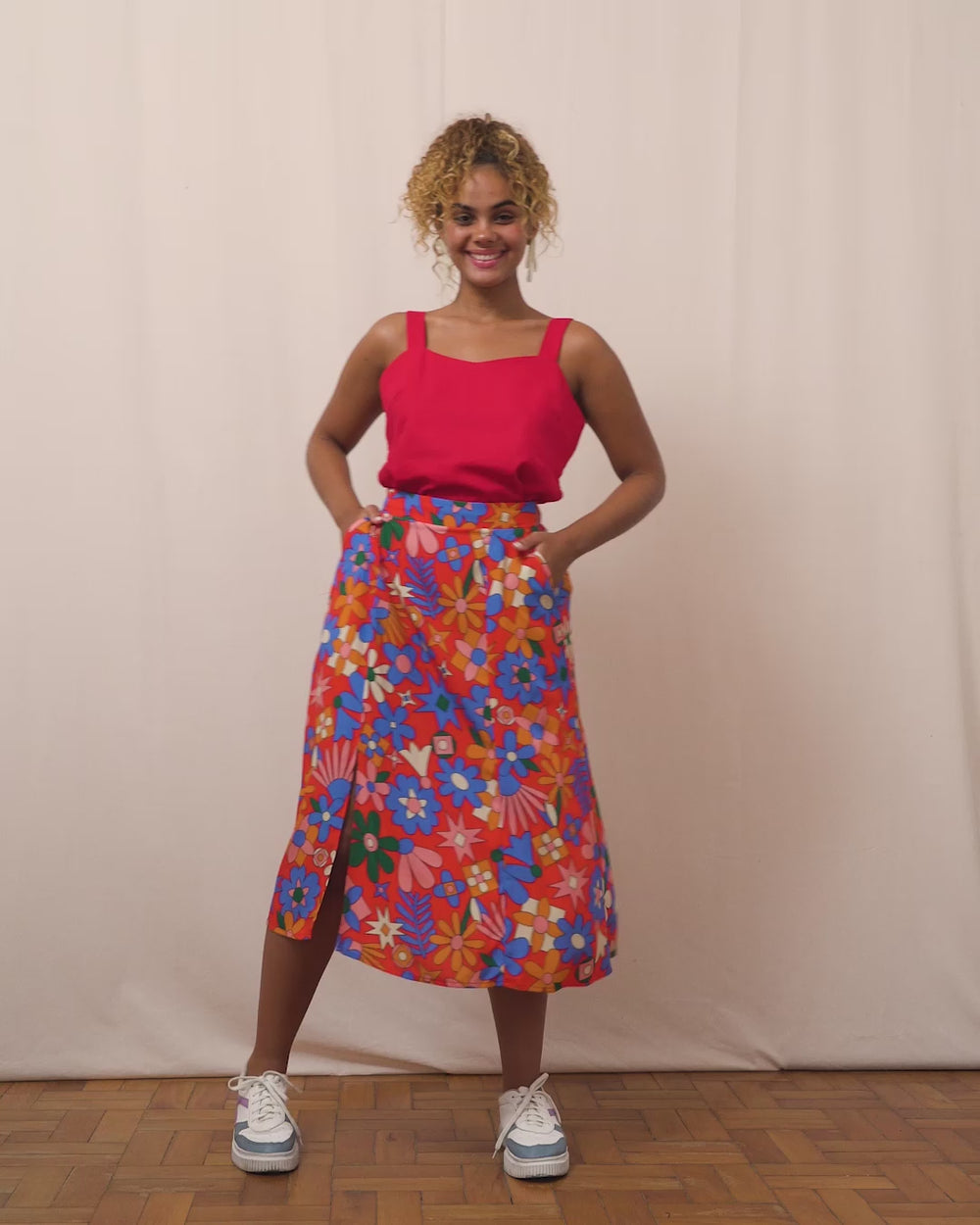 Os bolsos laterais é o que torna a peça, além de linda e fluida, uma peça com funcionalidade. Com certeza é a melhor escolha na hora de escolher uma saia!