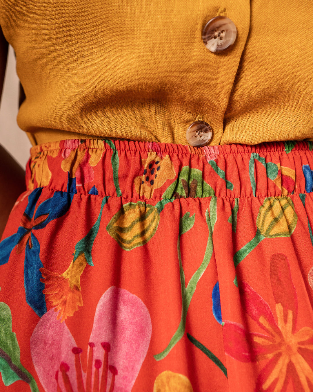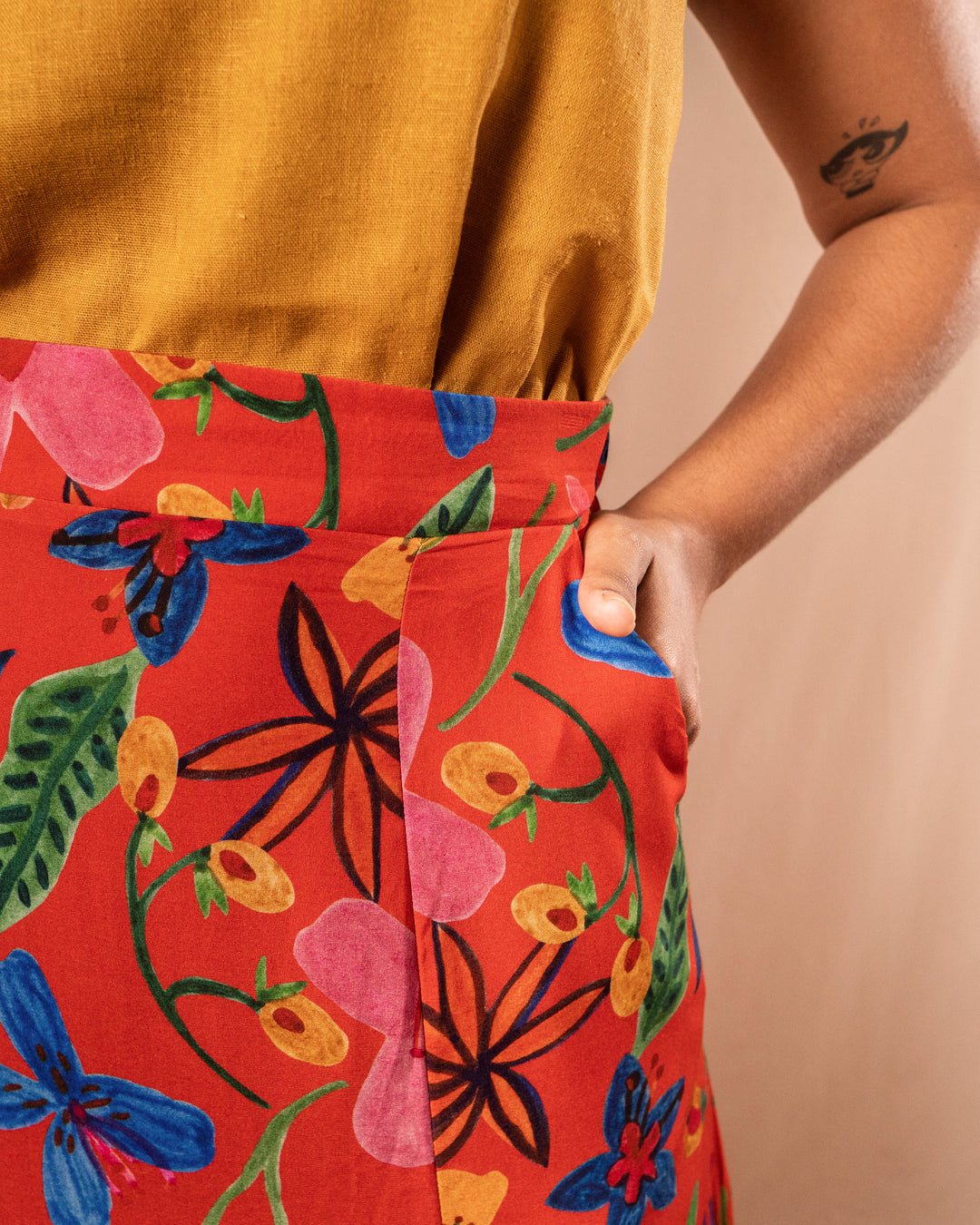 Os bolsos laterais é o que torna a peça, além de linda e fluida, uma peça com funcionalidade. Com certeza é a melhor escolha na hora de escolher uma saia!