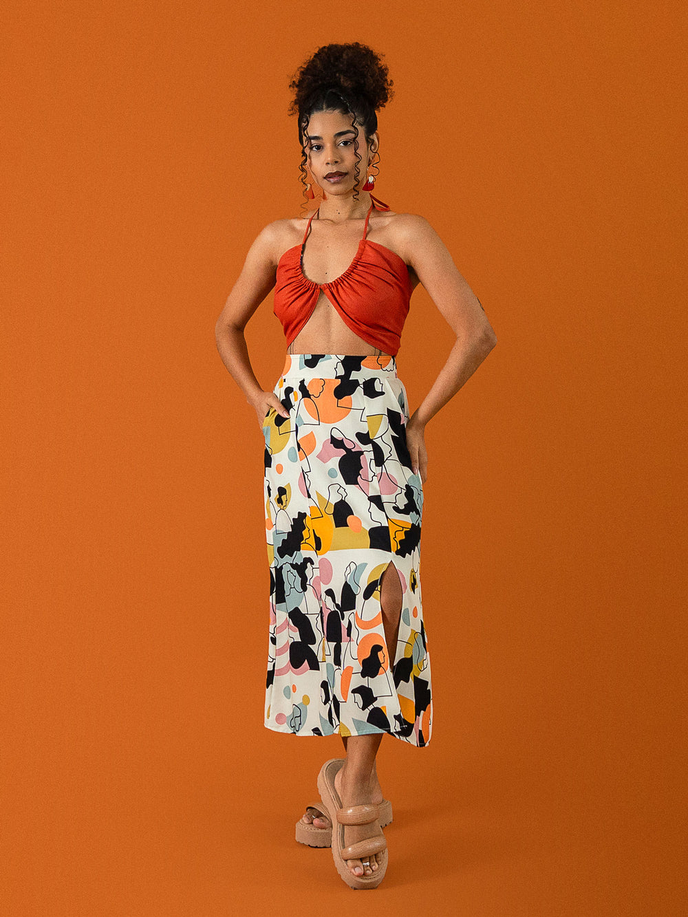 A Saia Agatha tem uma modelagem especial com recortes que valorizam o corpo. Ela tem elástico na parte de trás que deixa a peça mais ajustável aos diversos tipos de corpos, além de deixar a peça bem confortável. ✨ Tem bolsos pra deixar a peça funcional, e o mais lindo dela é a fenda frontal❤️