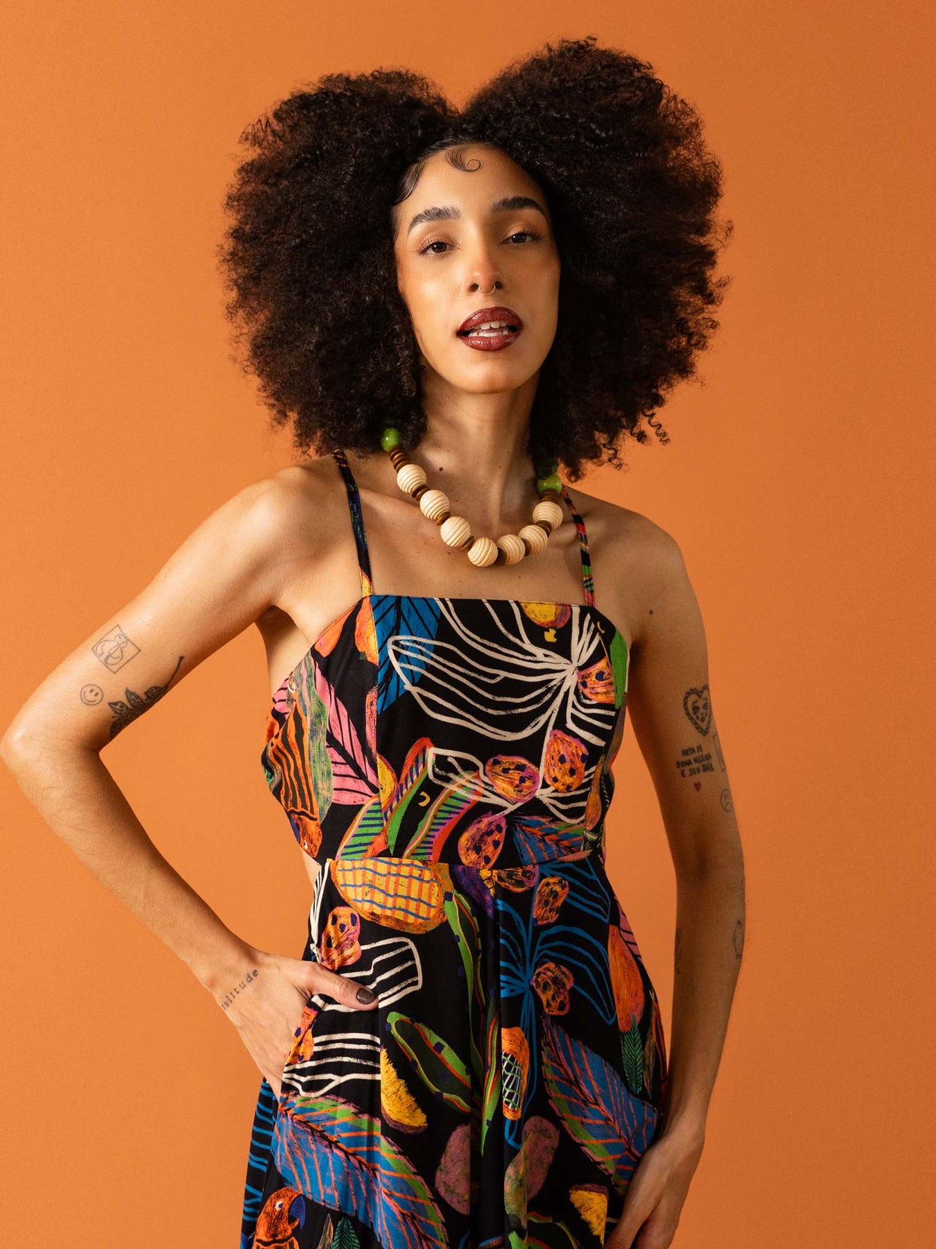 O Vestido Letícia é puro charme e leveza! Feito em viscose super fluida, ele tem aquele caimento perfeito que acompanha o movimento do corpo com elegância. Com recortes na cintura, ele valoriza a silhueta de forma delicada e moderna. 💫 Destaque para a amarração nas costas, que além de linda, permite ajustar a altura do decote para um caimento confortável. Um modelo versátil e estiloso, ideal para eventos especiais, passeios ao ar livre ou aquele encontro que pede um look marcante e leve ao mesmo tempo. Dica de ouro 💎 Escolha uma de nossas bolsas e combine com um brinco para dar o toque final no look e pronto!
