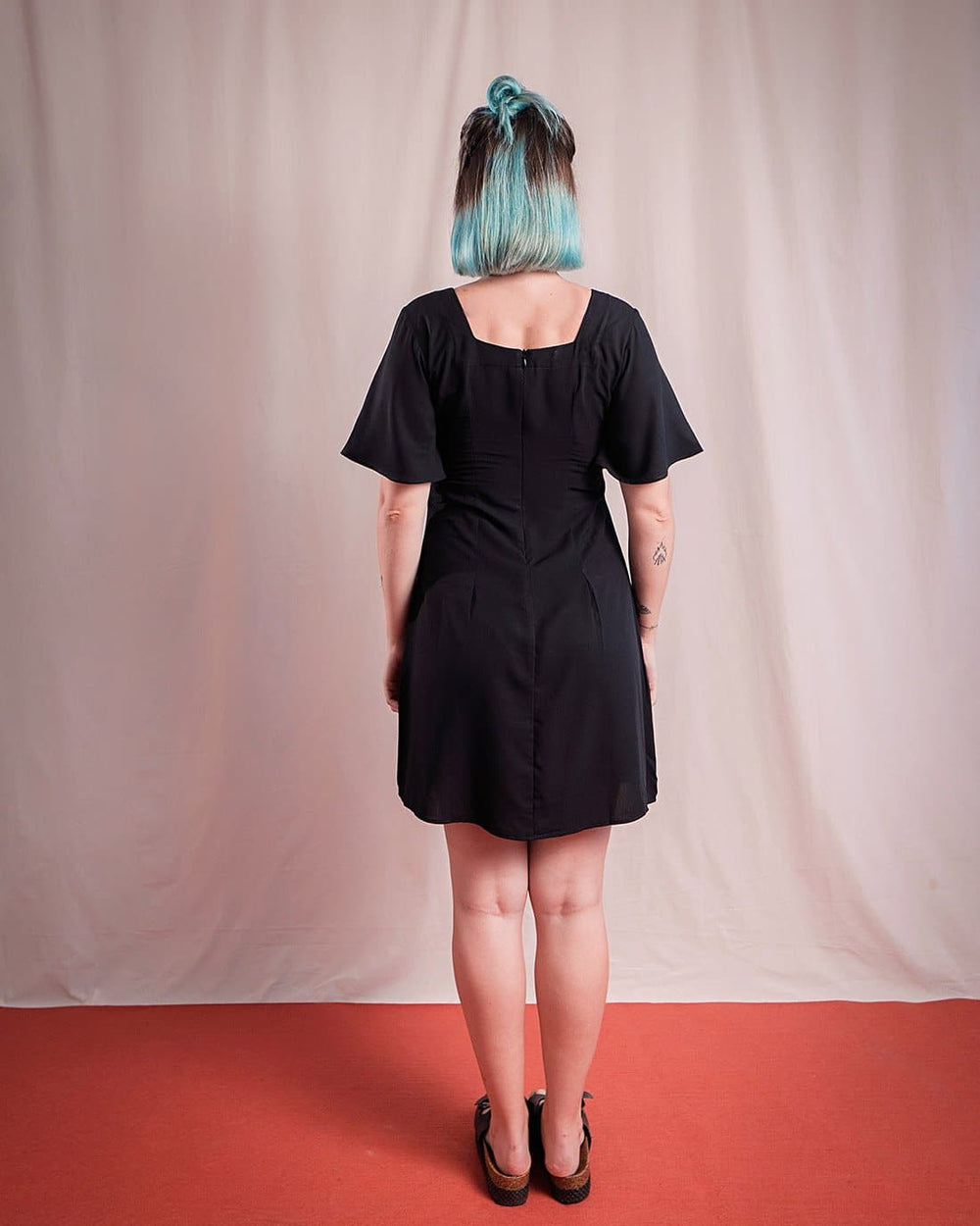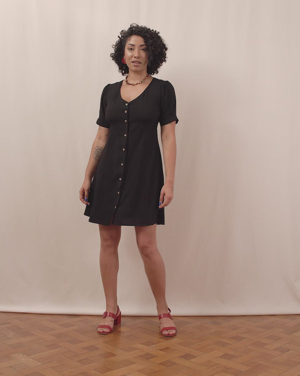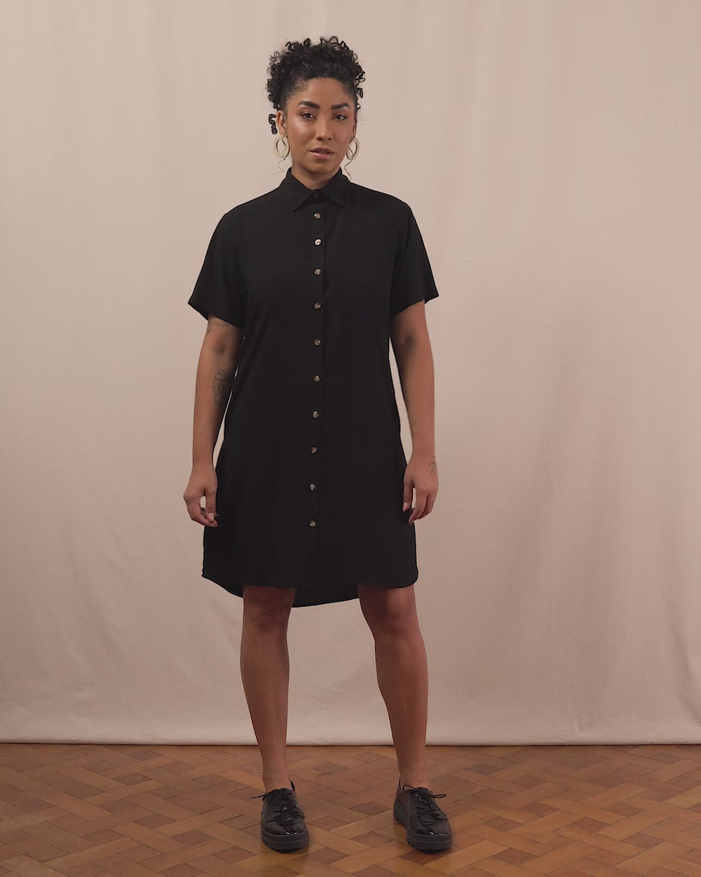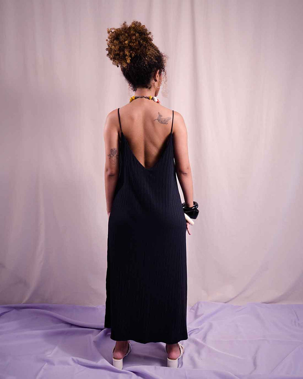 Vestido Hayla | Malha Canelada Preta [Tecido Sustentável]