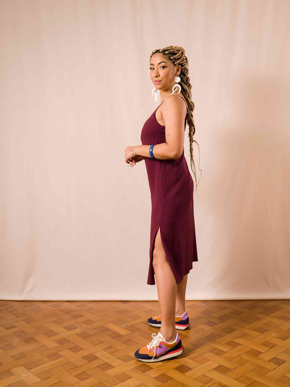 Vestido Hayla | Malha Canela Vinho [Tecido Sustentável]