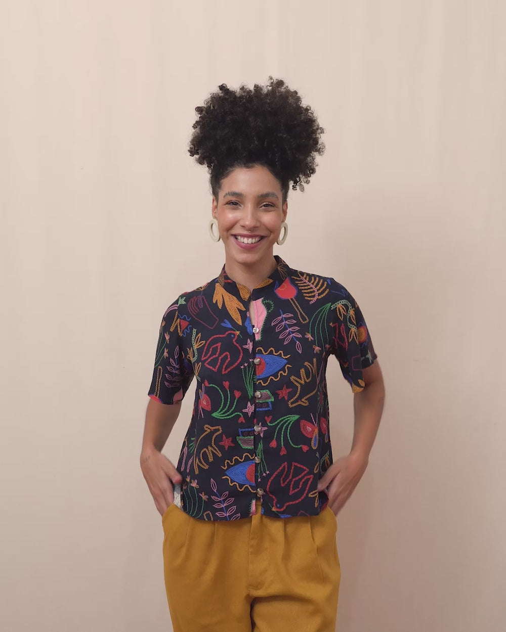 Blusa estampada com gola estilo japonesa, super charmosa e dá um charme todo especial na produção. Além de fresquinha e confortável, fica linda com saia, short ou calça. Na estampa Venise ficou maravilhosa não foi? 😍