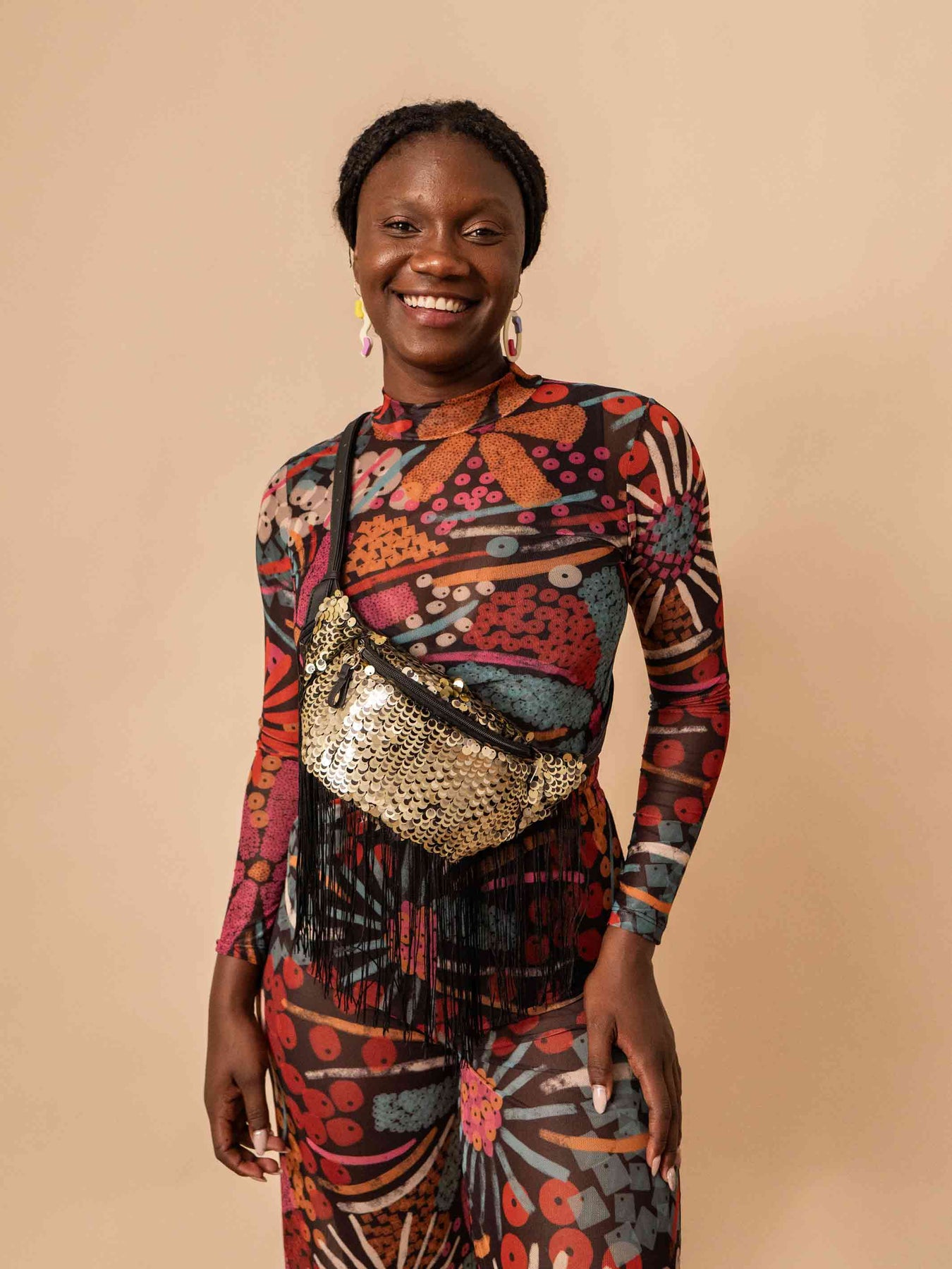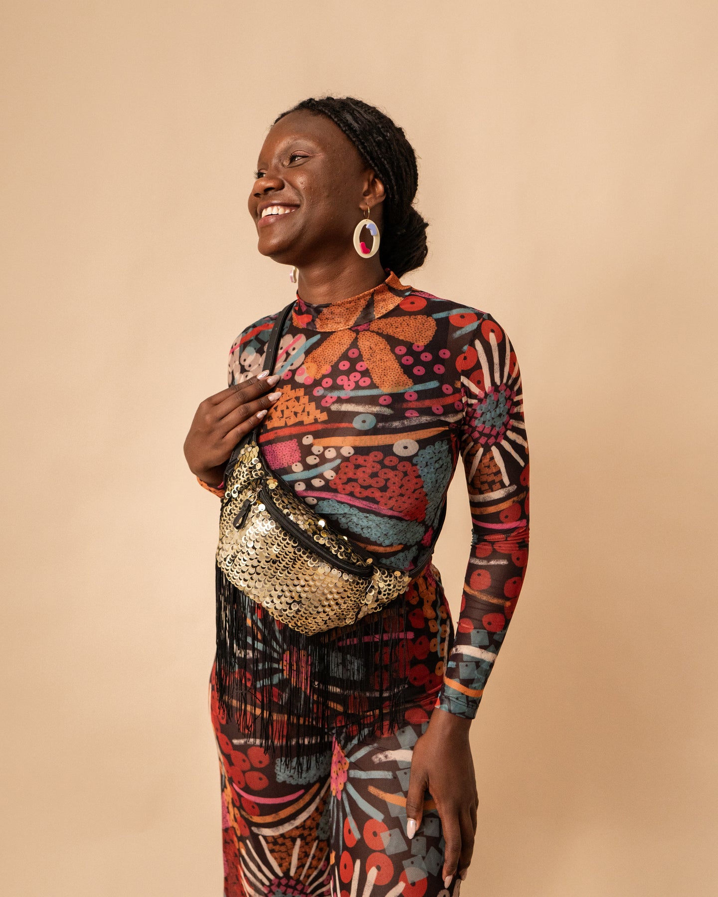 Pochete de paetês e franjas, perfeita para o carnaval ou para o dia a dia. Ela tem 2 bolsos, uma na parte de trás, para carregar itens de forma mais protegida e outro na parte da frente. Cabe MUITA coisa nela, o "essencial"e um pouquinho mais. 💫 Pode ser usada de ladinho ou na cintura.