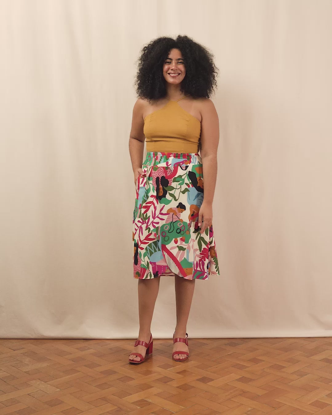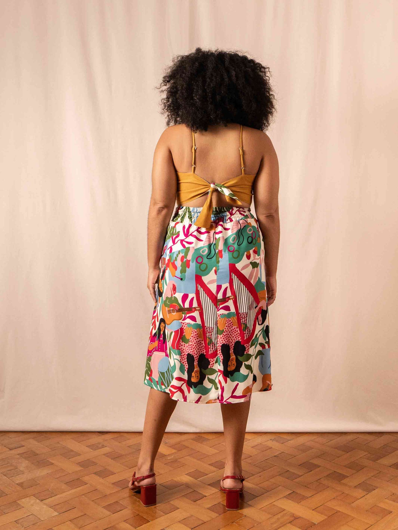 Saia midi e super confortável.🙆🏻♀️Com uma pala ampla e elástico muito flexível na parte de trás, ela se ajusta perfeitamente a vários tipos de corpos. Ela tem bolso faca, que deixa a peça além de linda, super funcional. Você vai amar e não vai mais querer tirar! 😍 Com salto tenis ou rasteira é aquela coringa que te acompanha em qualquer lugar.