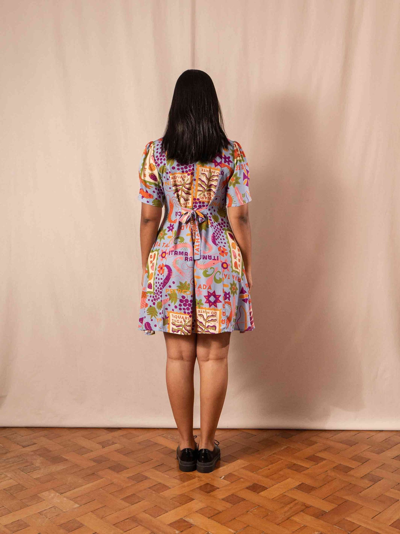 Vestido curto, com caimento confortável e corte acinturado. Possui um laço atrás que permite regular deixando a peça mais soltinha ou mais justa e acinturada. 💫 As mangas dão um charme todo especial à peça. Vai de um passeio para uma ocasião mais especial, com salto, tenis ou rasteira ele te acompanha em qualquer lugar! Me fala se não é maravilhoso?! 😍