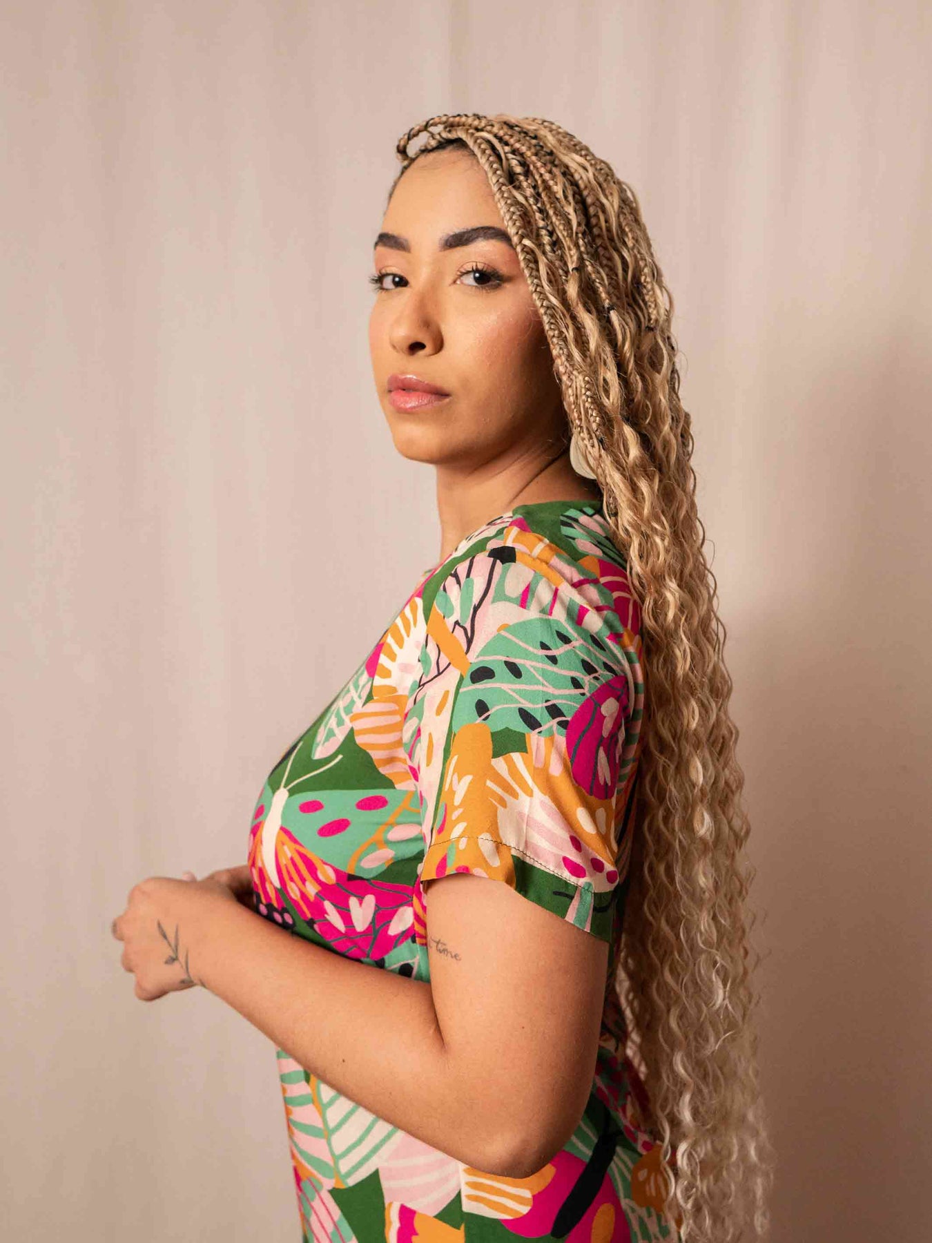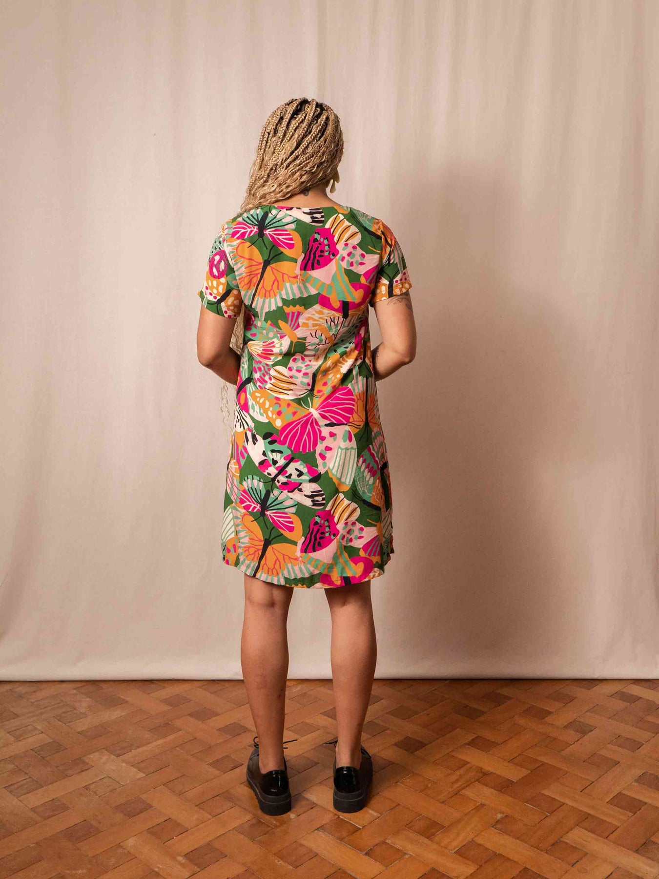 Vestido Midi estampado, perfeito para quem gosta de peças mais folgadas e que não marcam. 😉 O seu comprimento fica abaixo do joelho e ele é muito fresquinho e confortável! Perfeito para o dia a dia ou para uma ocasião especial. 💫